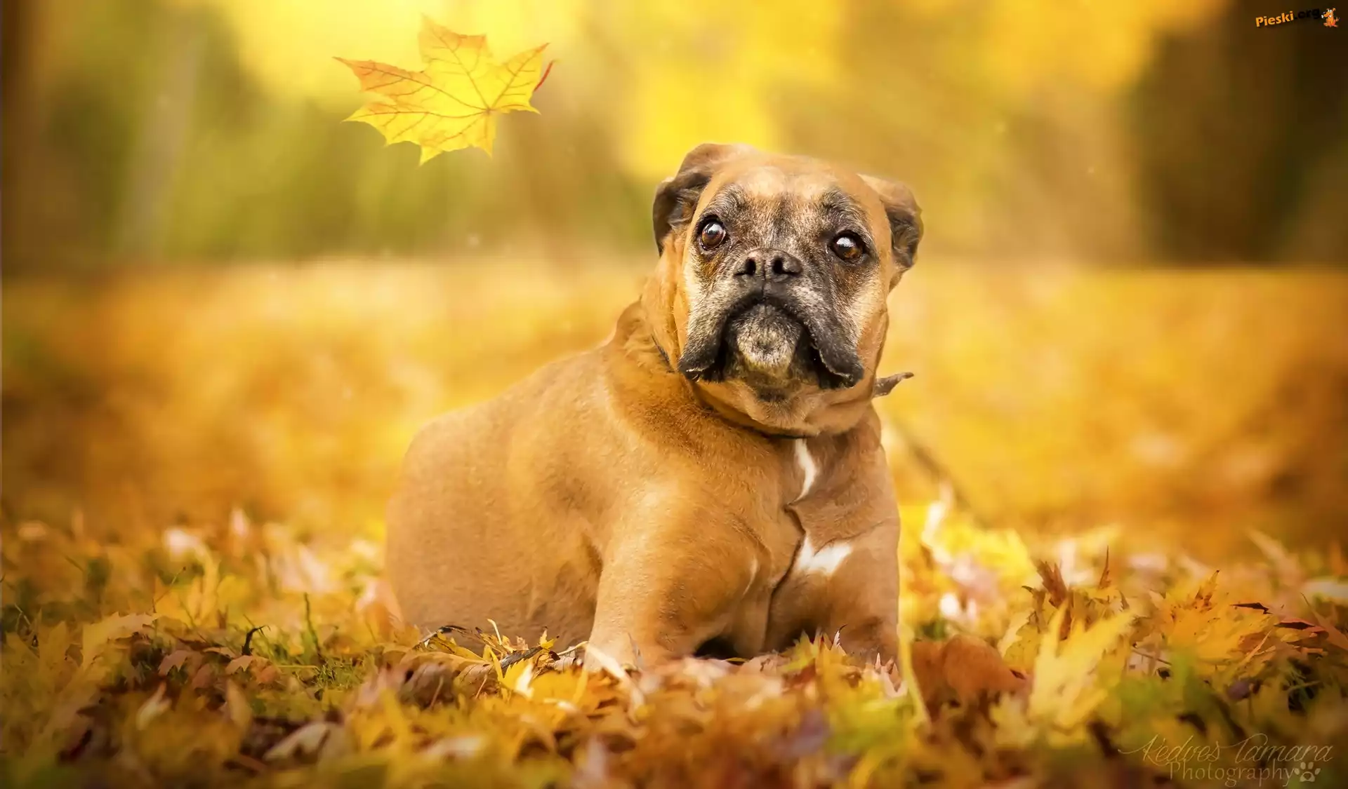 Pies, Bokser, Liść, Pieski