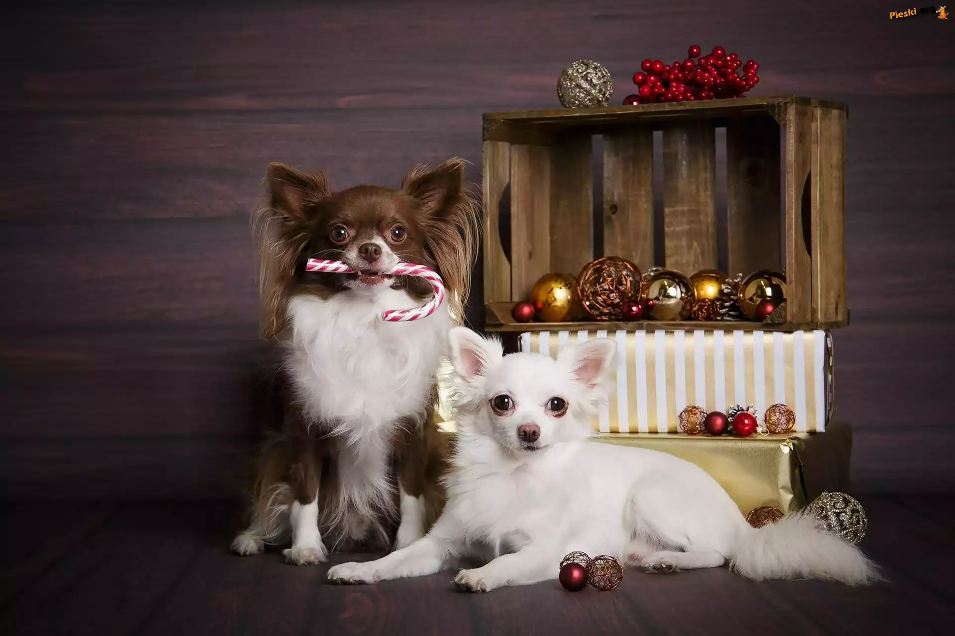 Bombki, Psy, Dwa, Chihuahua długowłosa, Świąteczne, Pieski