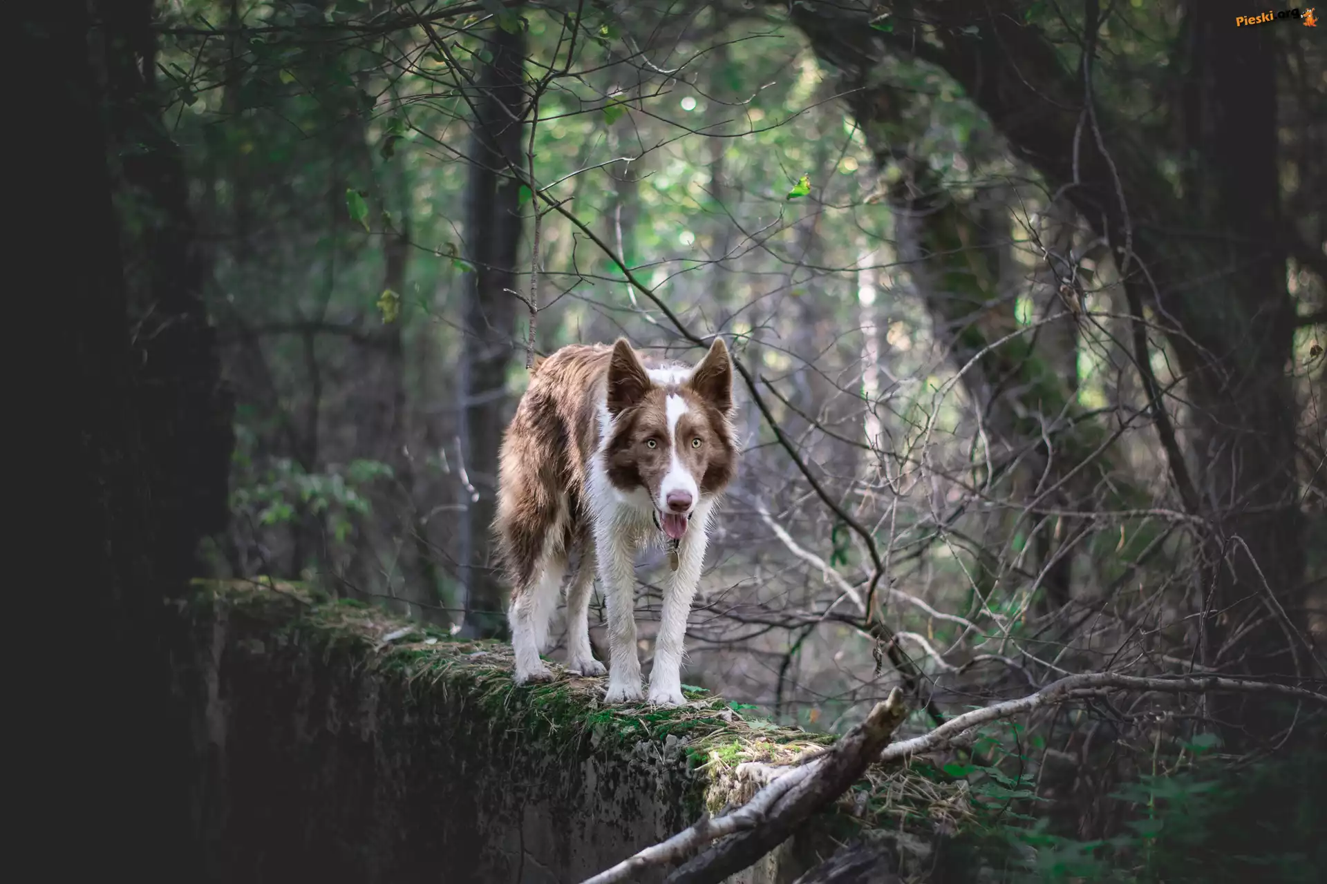 Drzewa, Border collie, Pies, Brązowo-biały, Murek, Pieski