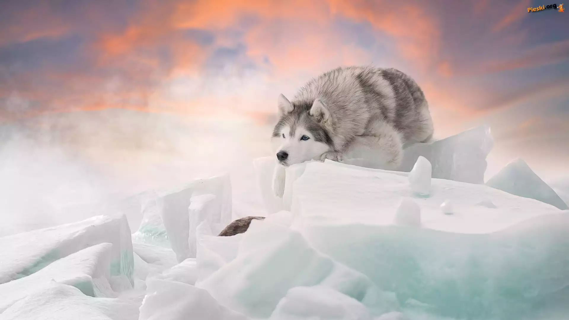 Bryły, Siberian husky, Pies, Śnieg, Zima, Pieski
