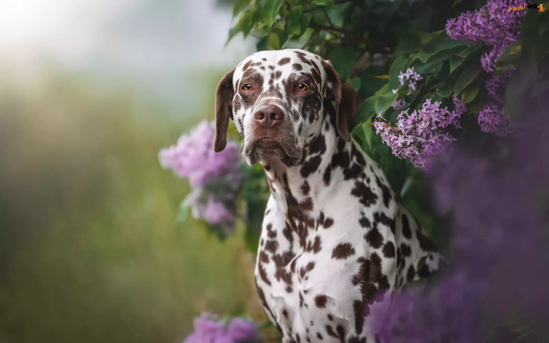 Bez, Gałązki, Pies, Dalmatyńczyk, Pieski