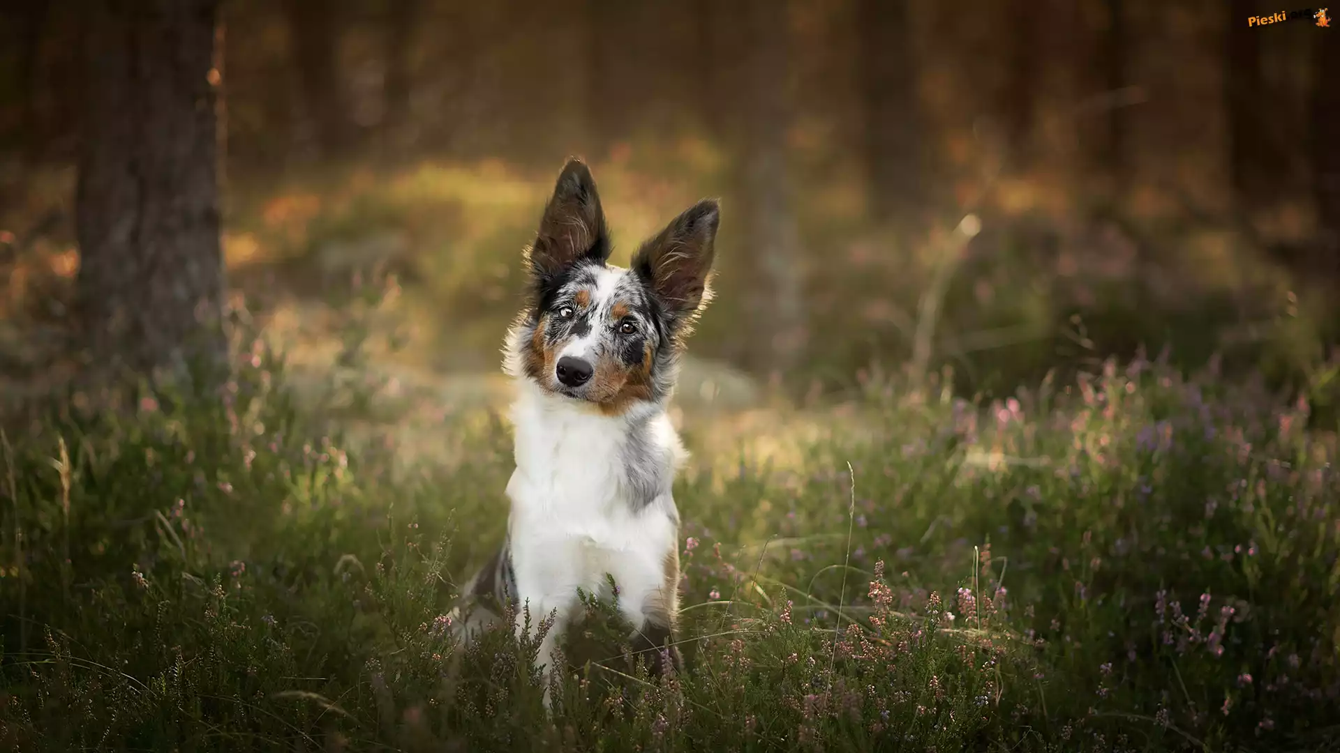 Drzewa, Pies, Border collie, Wrzos
