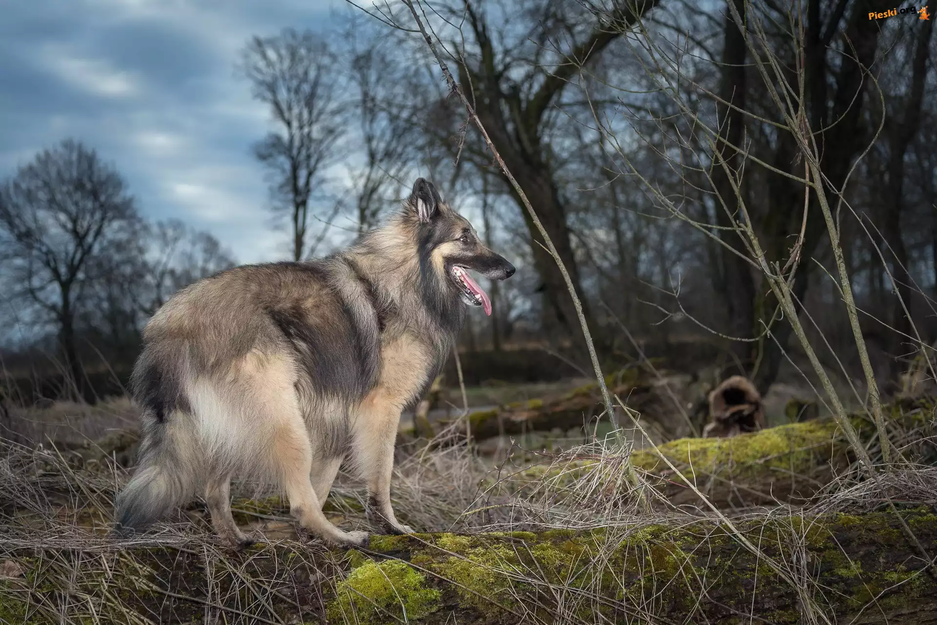 Drzewa, Pies, Owczarek niemiecki, Trawy