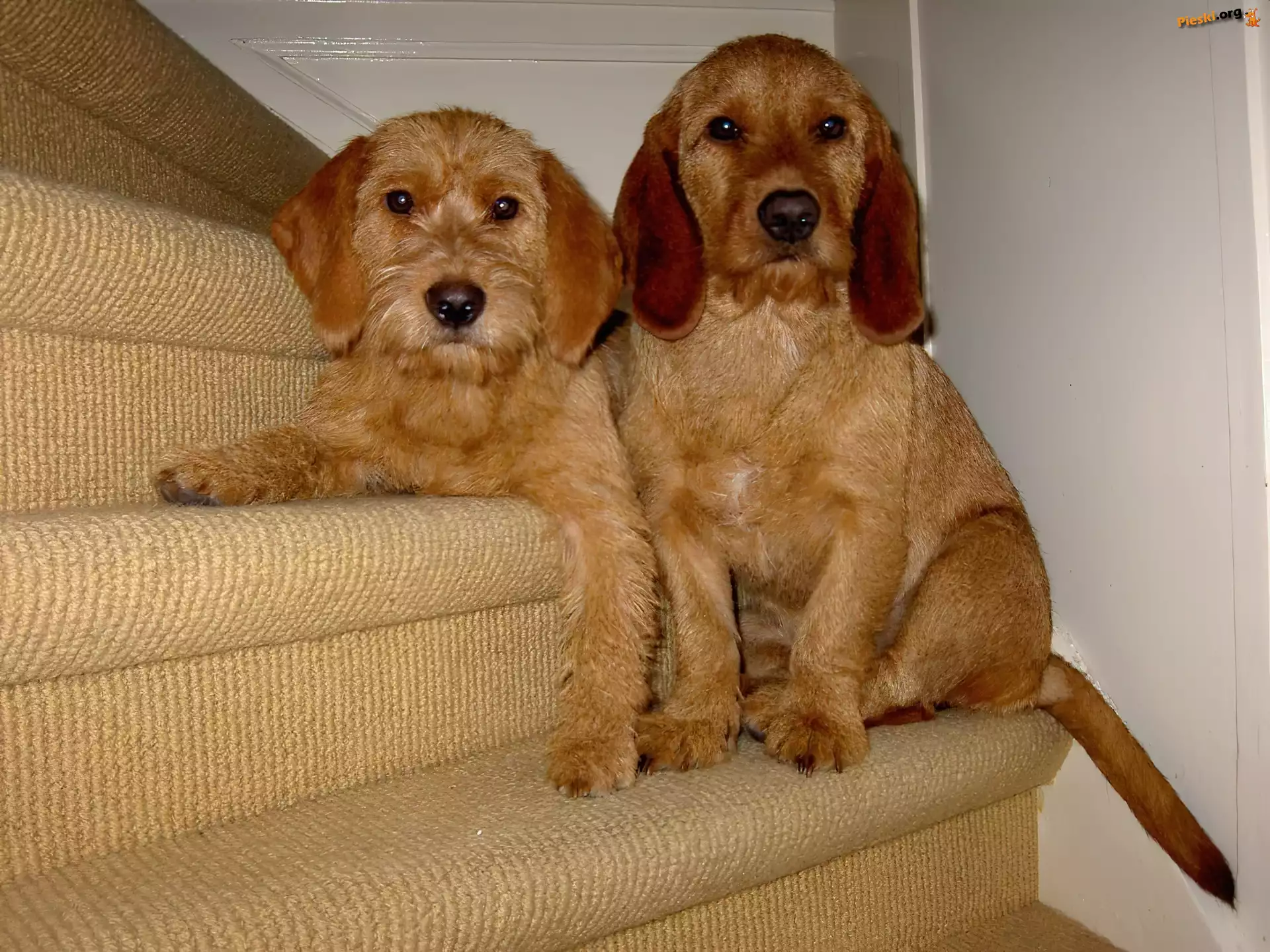 Basset Fauve de Bretagne, dwa, słodkie, schody