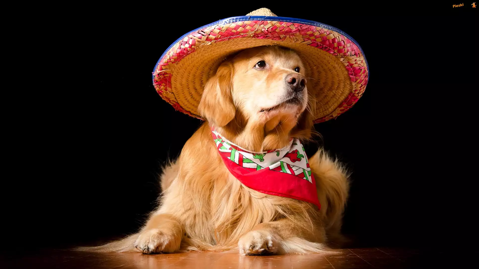 Apaszka, Golden retriever, Pies, Kapelusz, Ciemne tło, Pieski