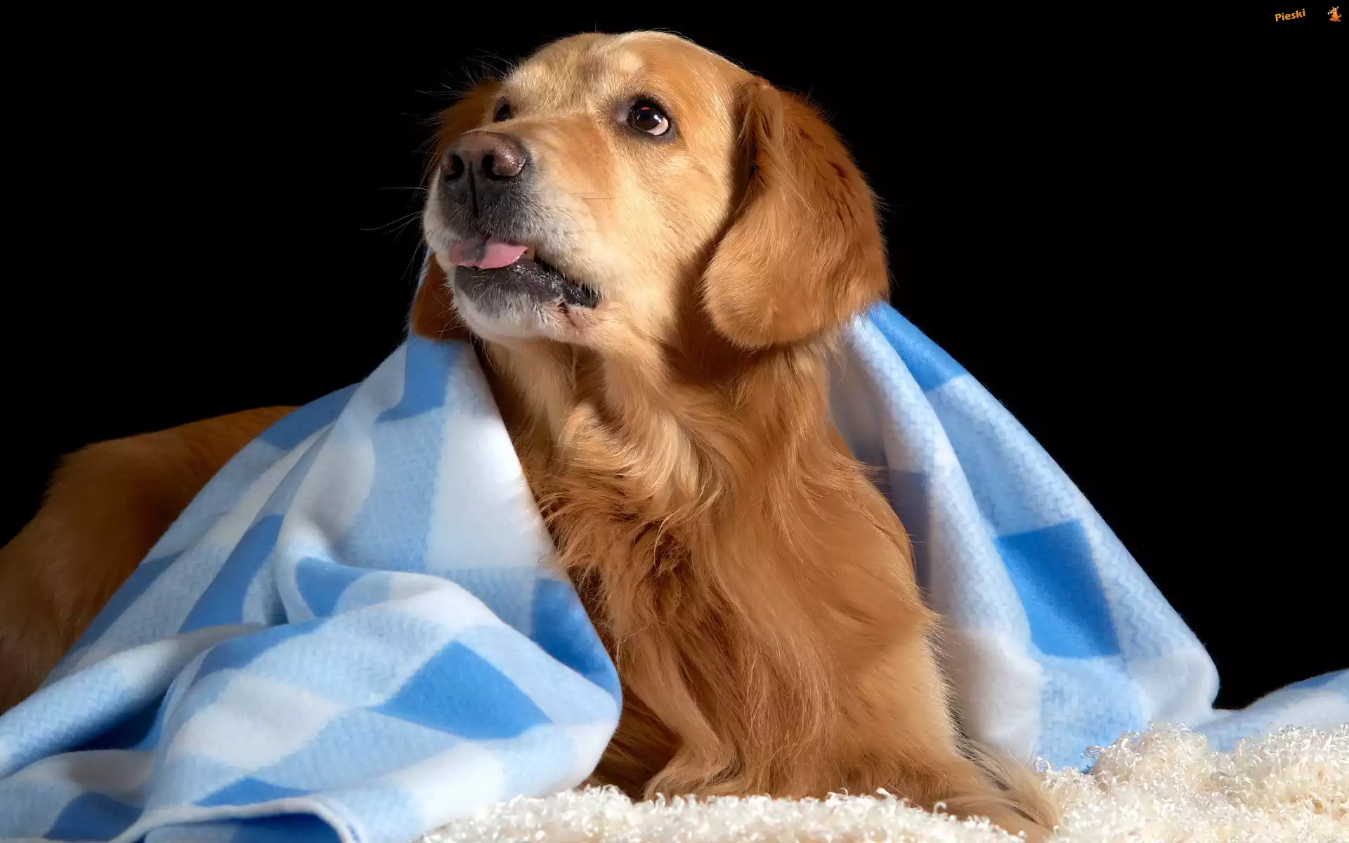 Golden Retriever, Język, Kocyk, Pieski