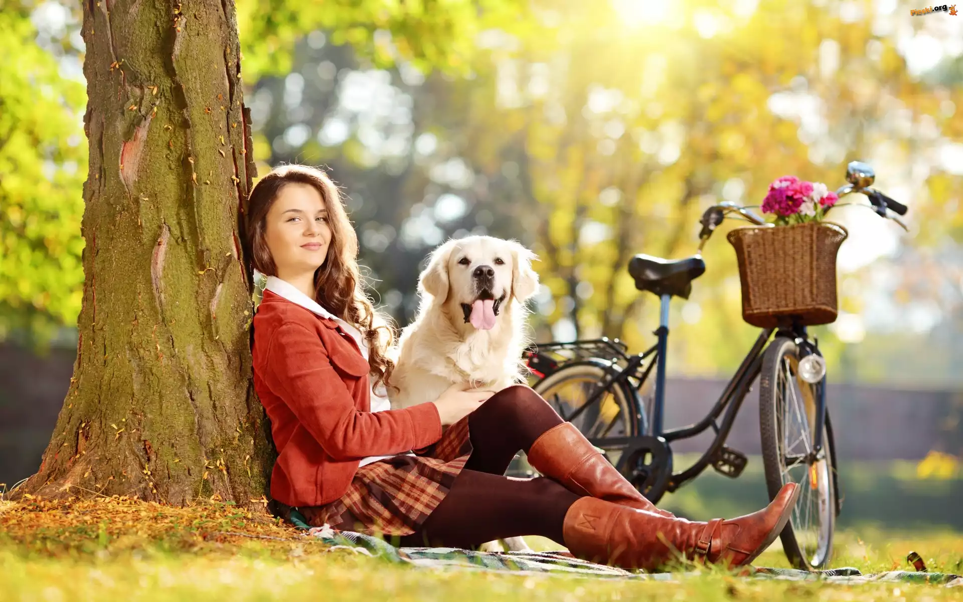 Golden, Kobieta, Pies, Retriewer, Pieski