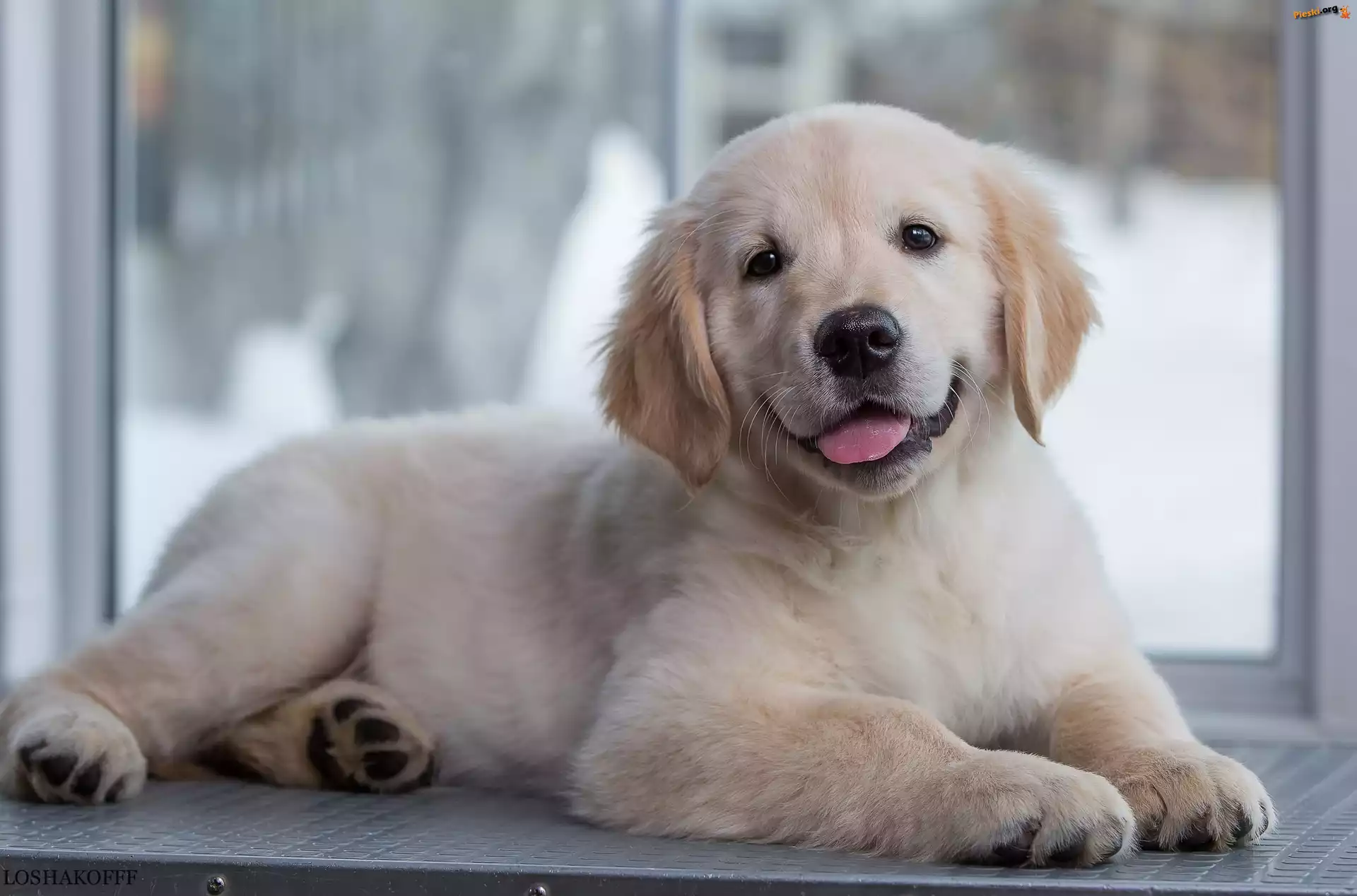 Golden retriever, Słodki, Szczeniak, Okno, Pieski