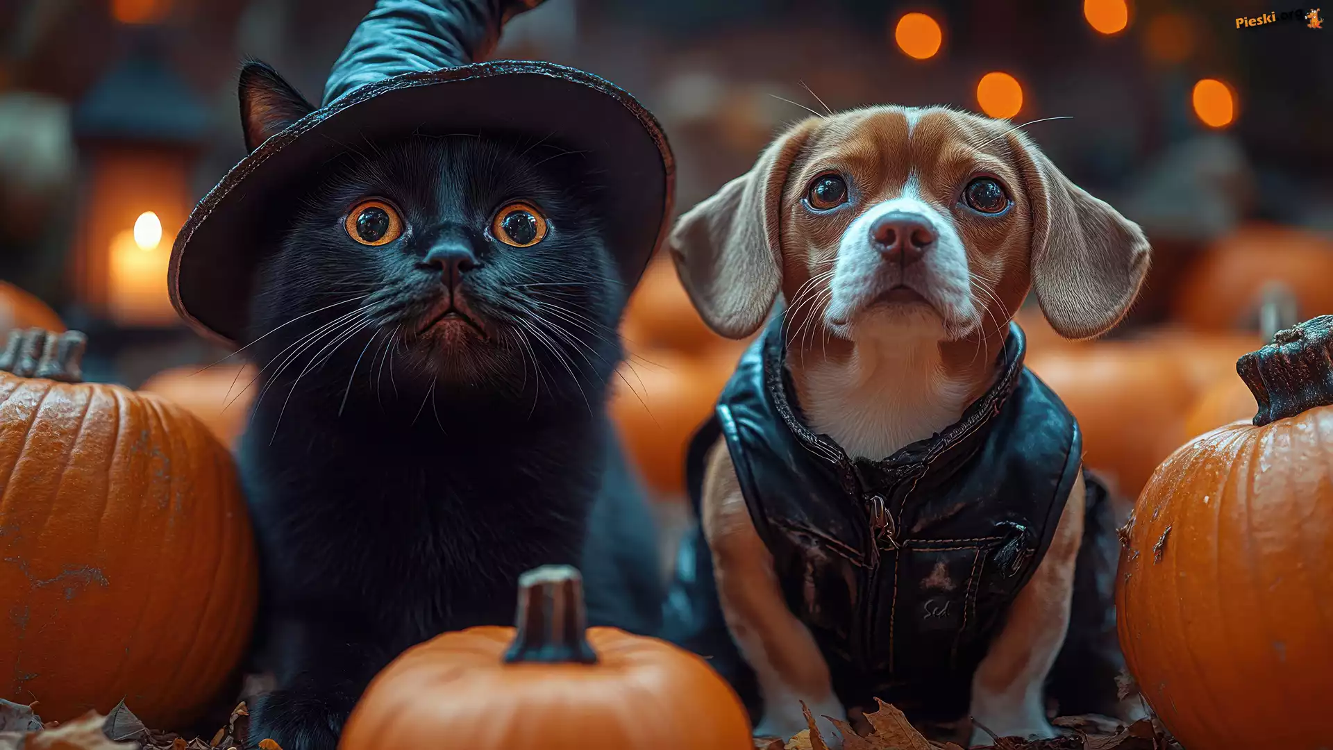 Dynie, Pies, Kot, Grafika, Kapelusz, Czarny