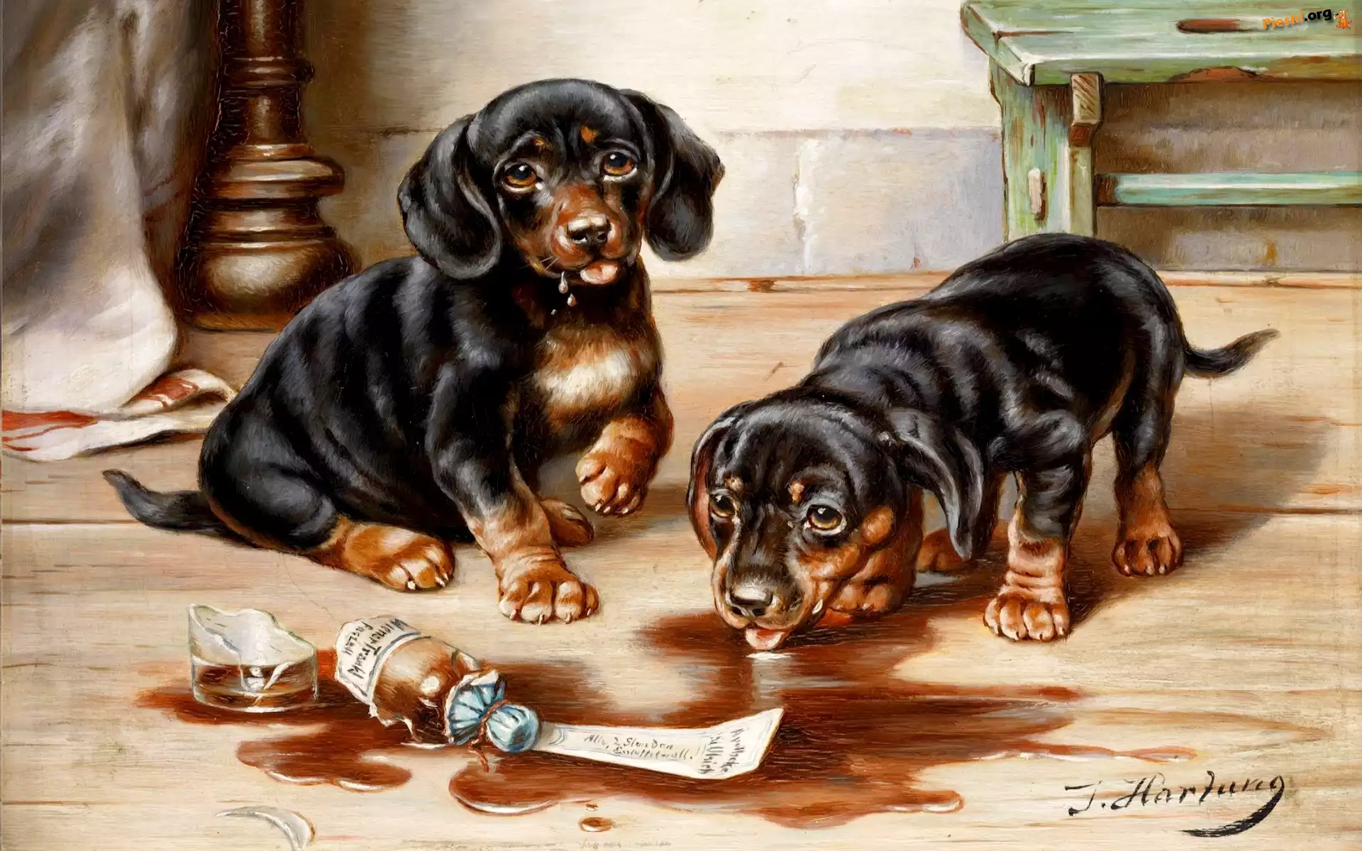 Jamniki, Dwa, Szczeniaki, Obraz