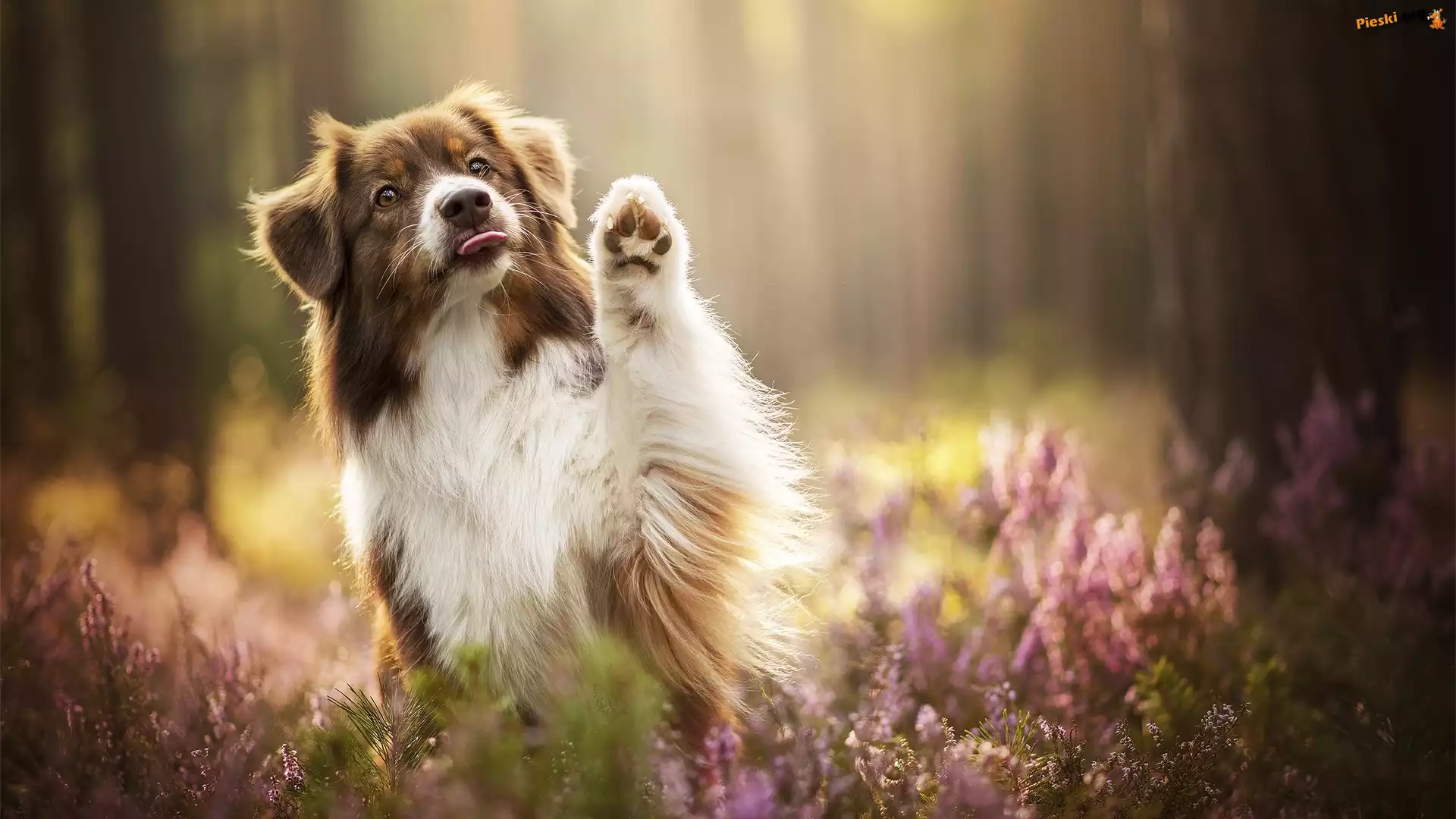 Język, Owczarek australijski, Pies, Łąpka, Wrzosy