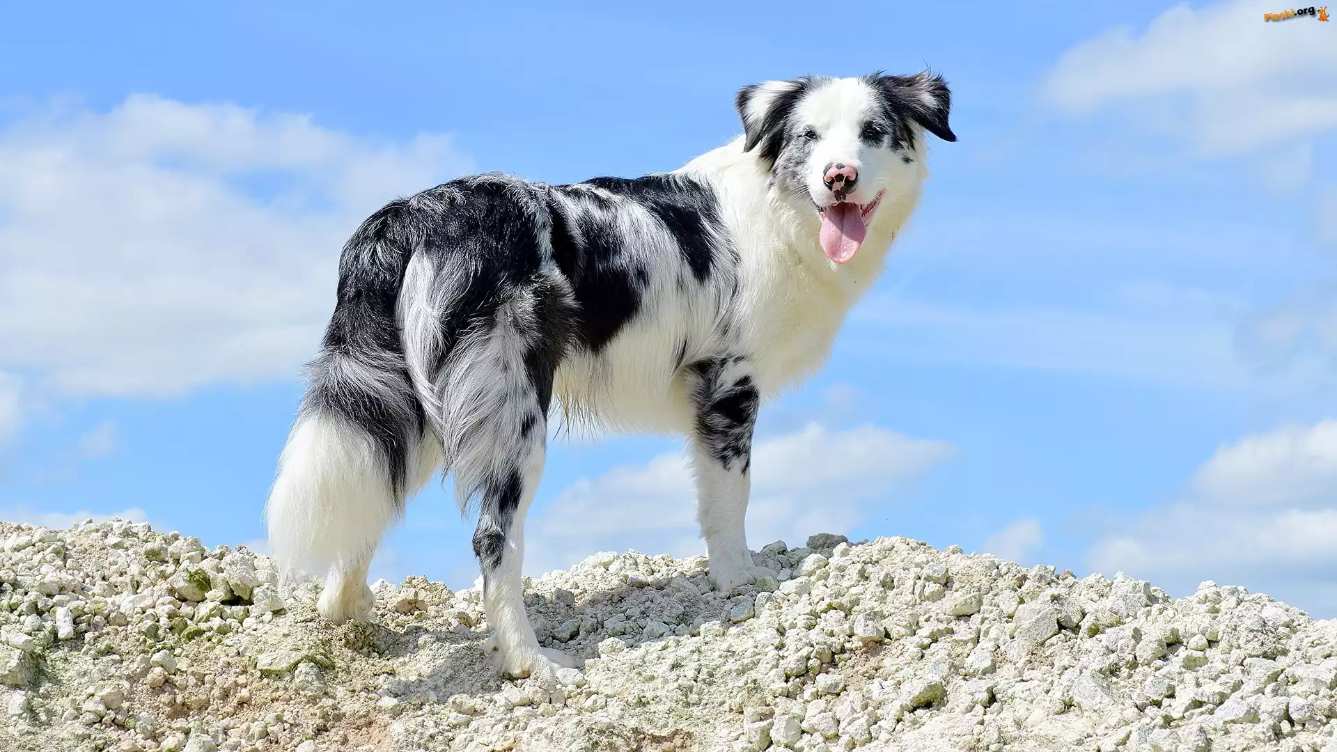 Kamienie, Owczarek australijski, Pies, Skarpa, Niebo