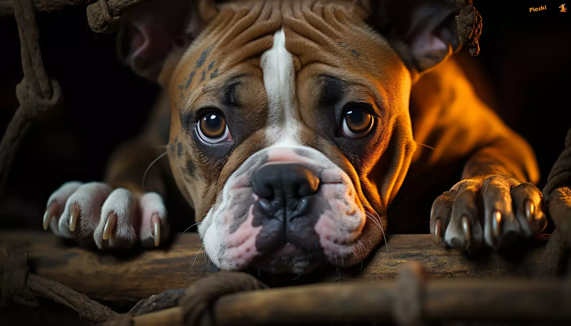 Pyszczek, Kłoda, Pies, Łapy, Buldog, Pieski