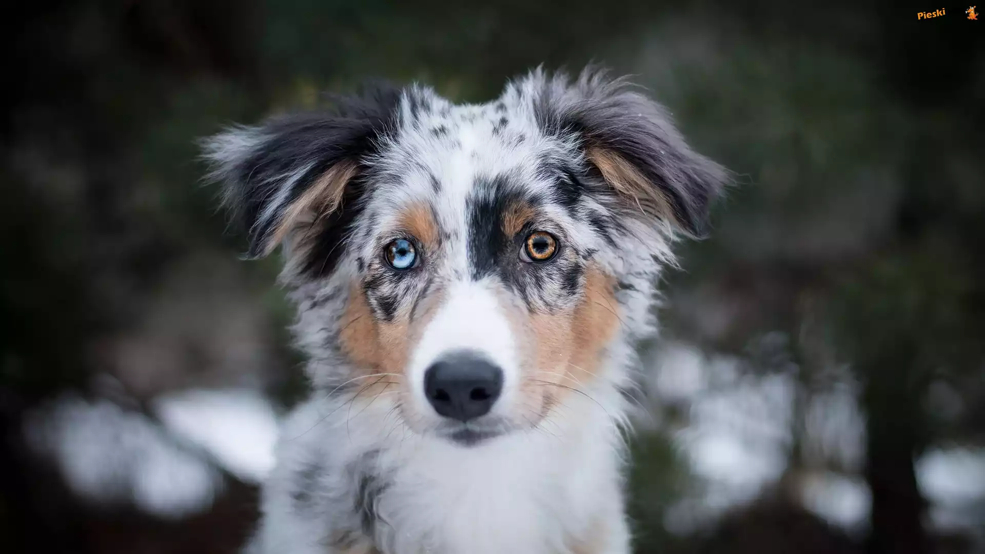 Kolorowe, Owczarek australijski, Szczeniak, Mordka, Oczy, Pieski
