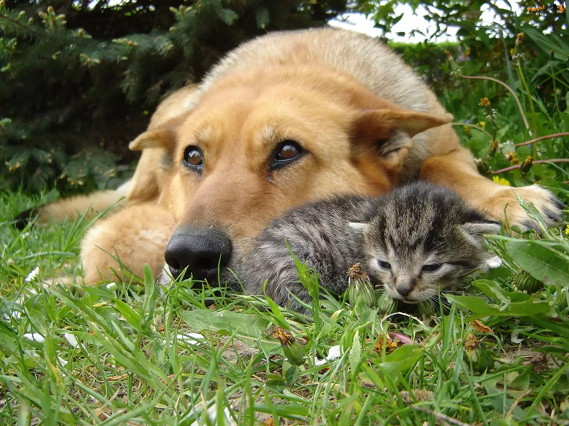 Trawa, Kotek, Pies
