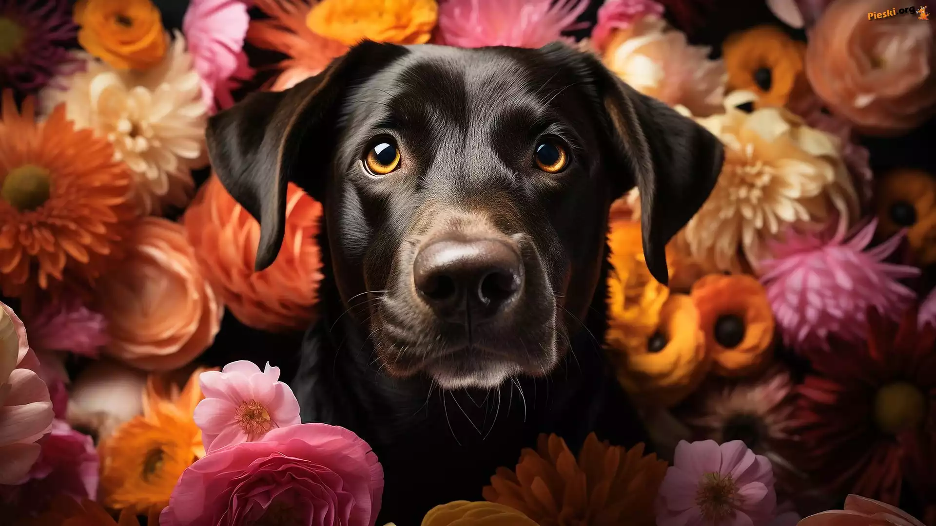 Kwiaty, Mordka, Pies, Pieski