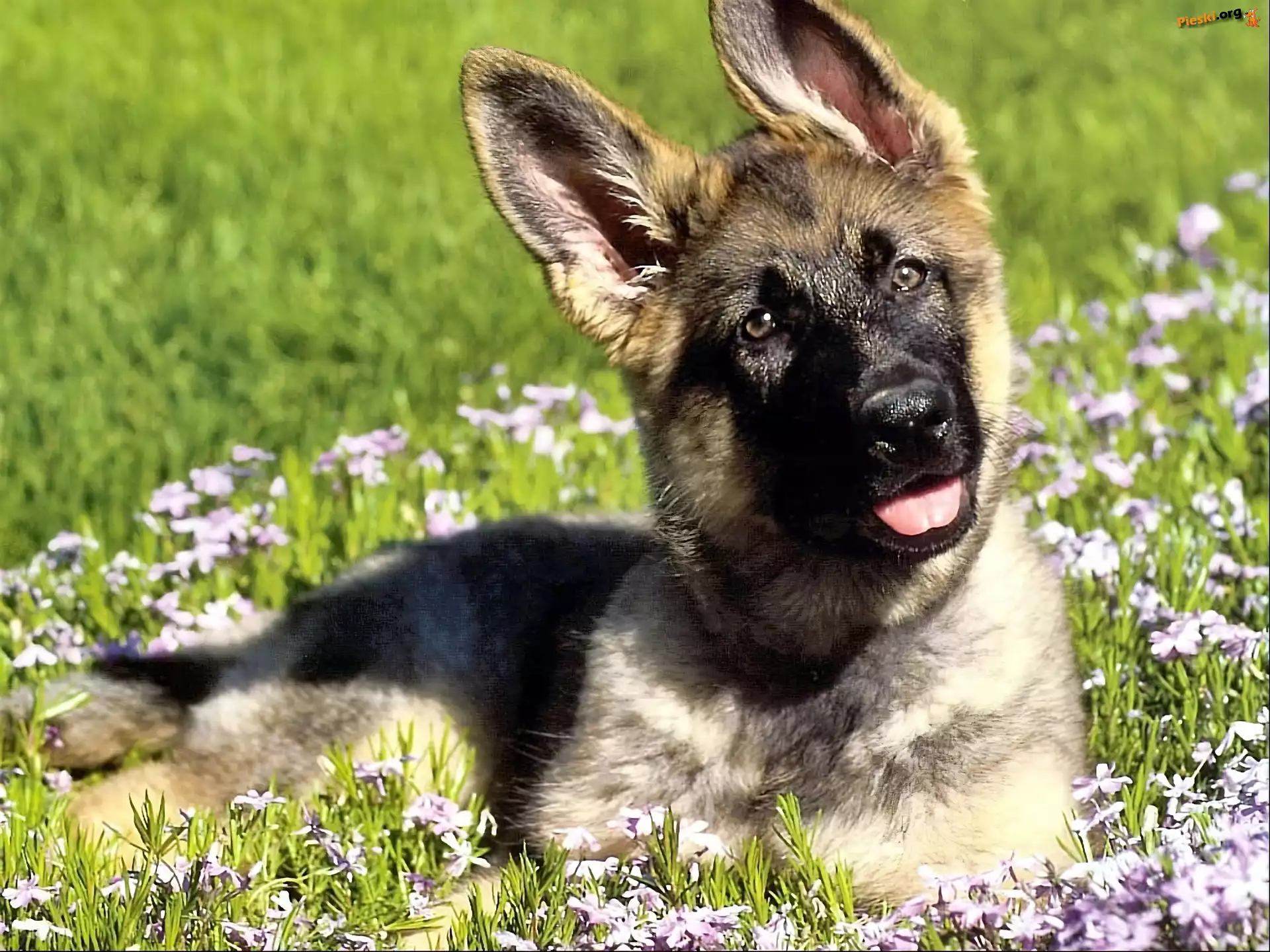 Pies, Kwiaty, Trawa, Pieski