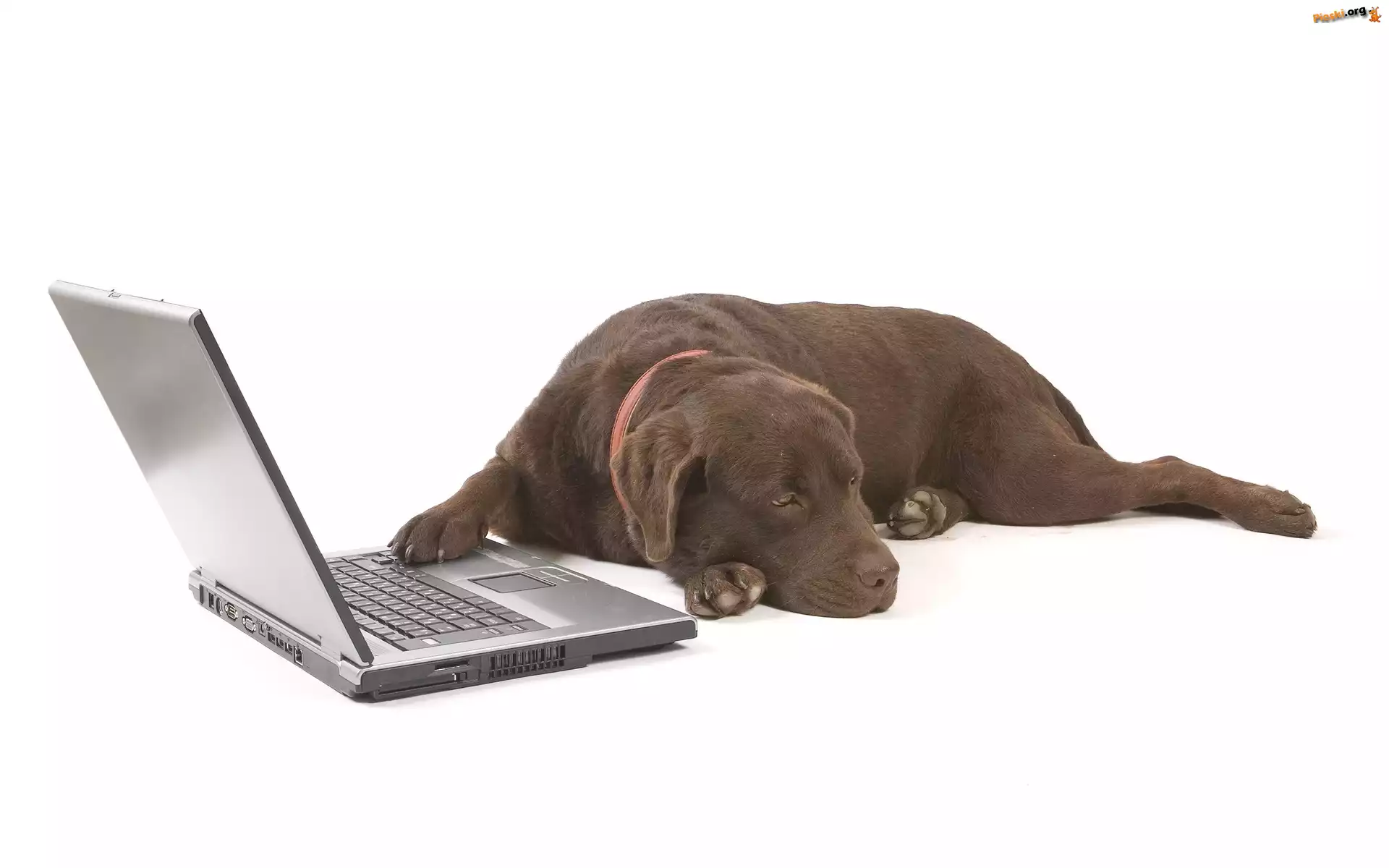Brązowy, Labrador, Laptop, Pieski