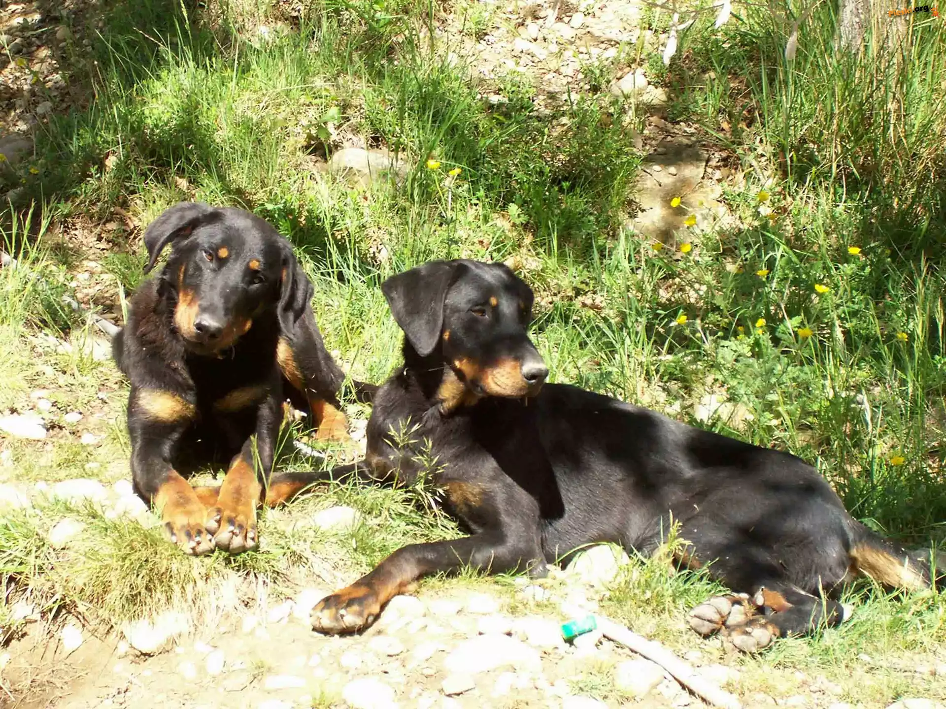 Dwa, leżące, Beaucerony, Pieski