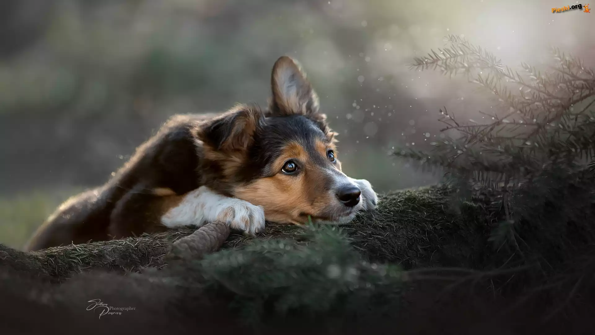 Szyszka, Leżący, Iglaste, Szczeniak, Pies, Kłoda, Gałązki, Pieski