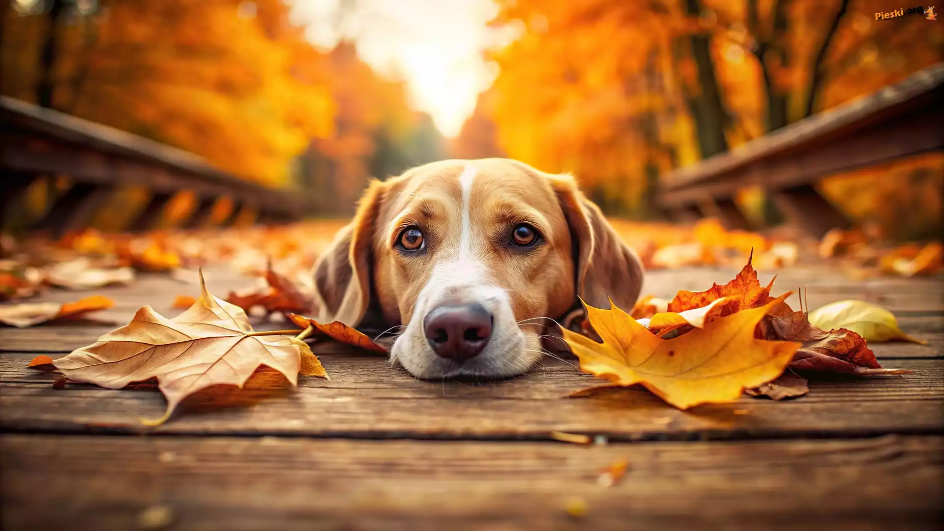 Grafika, Jesień, Pies, Liście