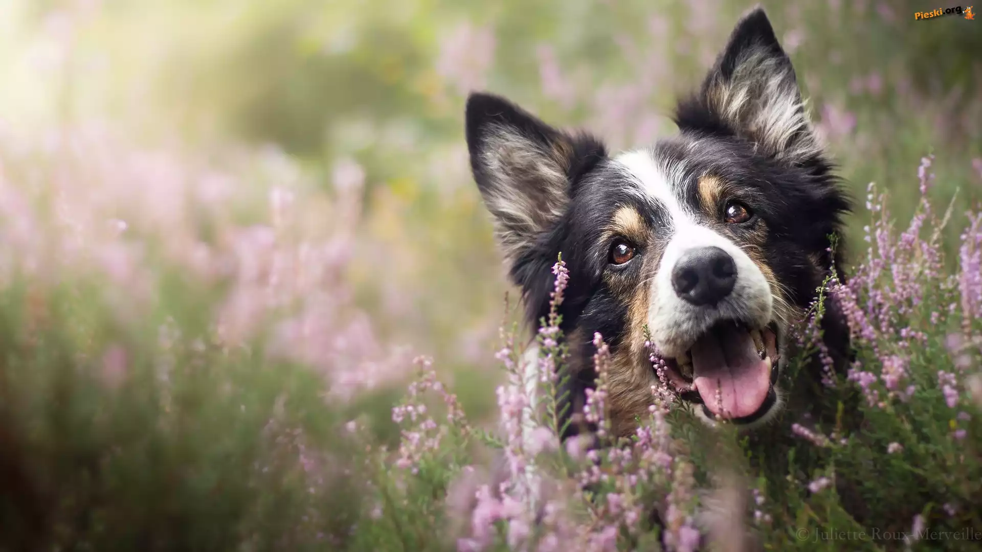 Mordka, Pies, Border collie, Wrzosy, Pieski