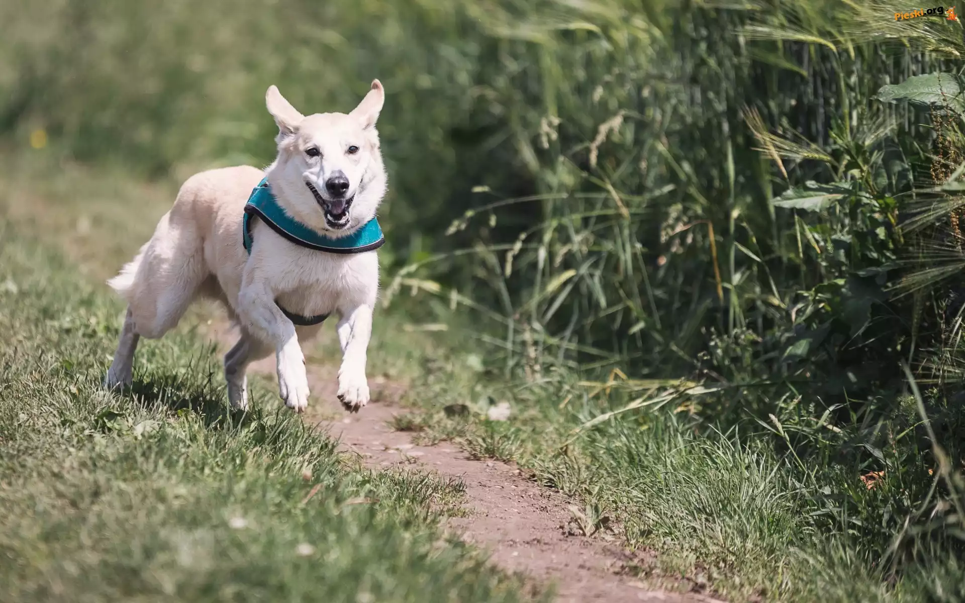 Obroża, Biały, Pies, Bieg