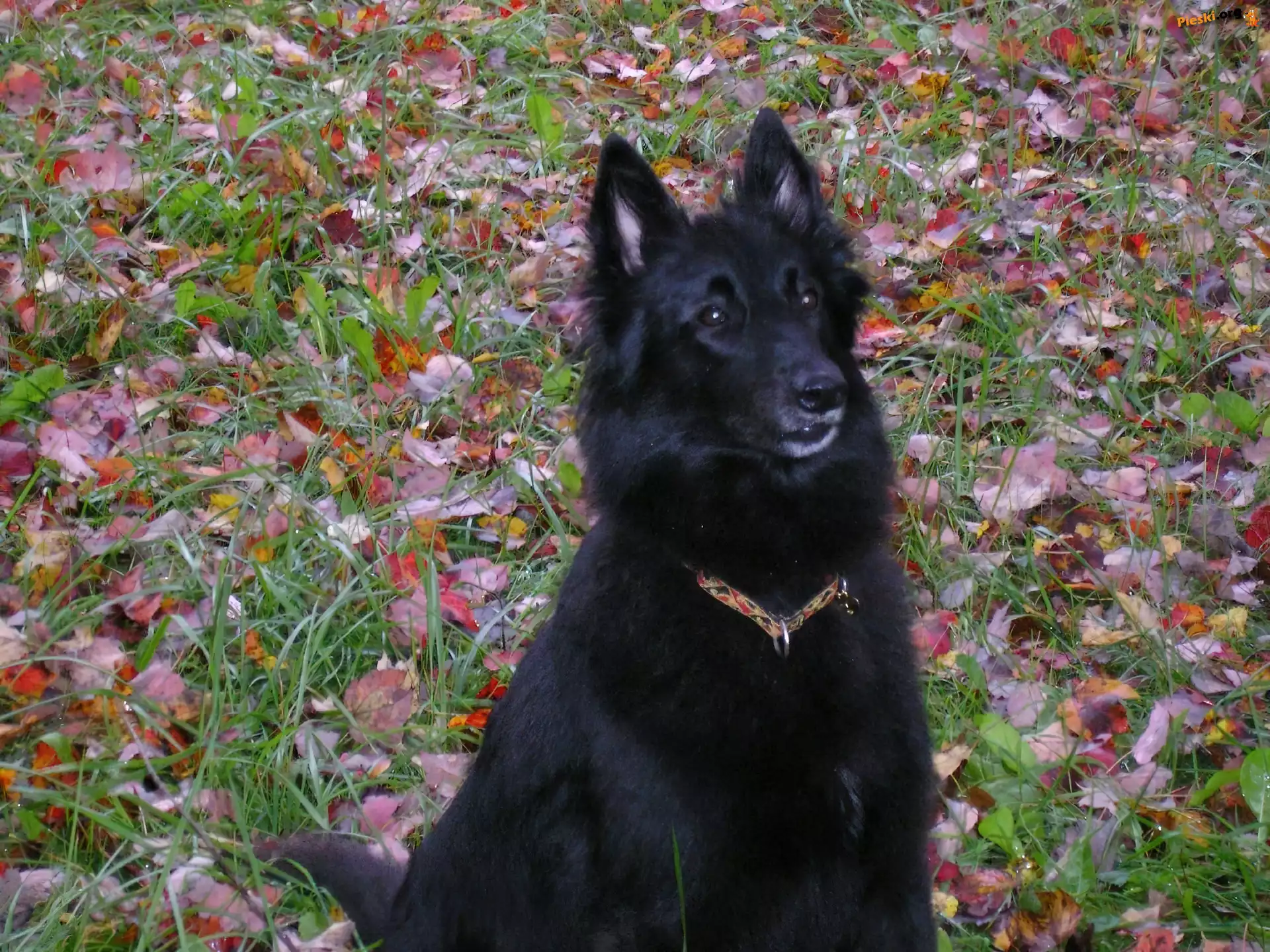 Owczarek belgijski Groenendael, kolorowe, liście