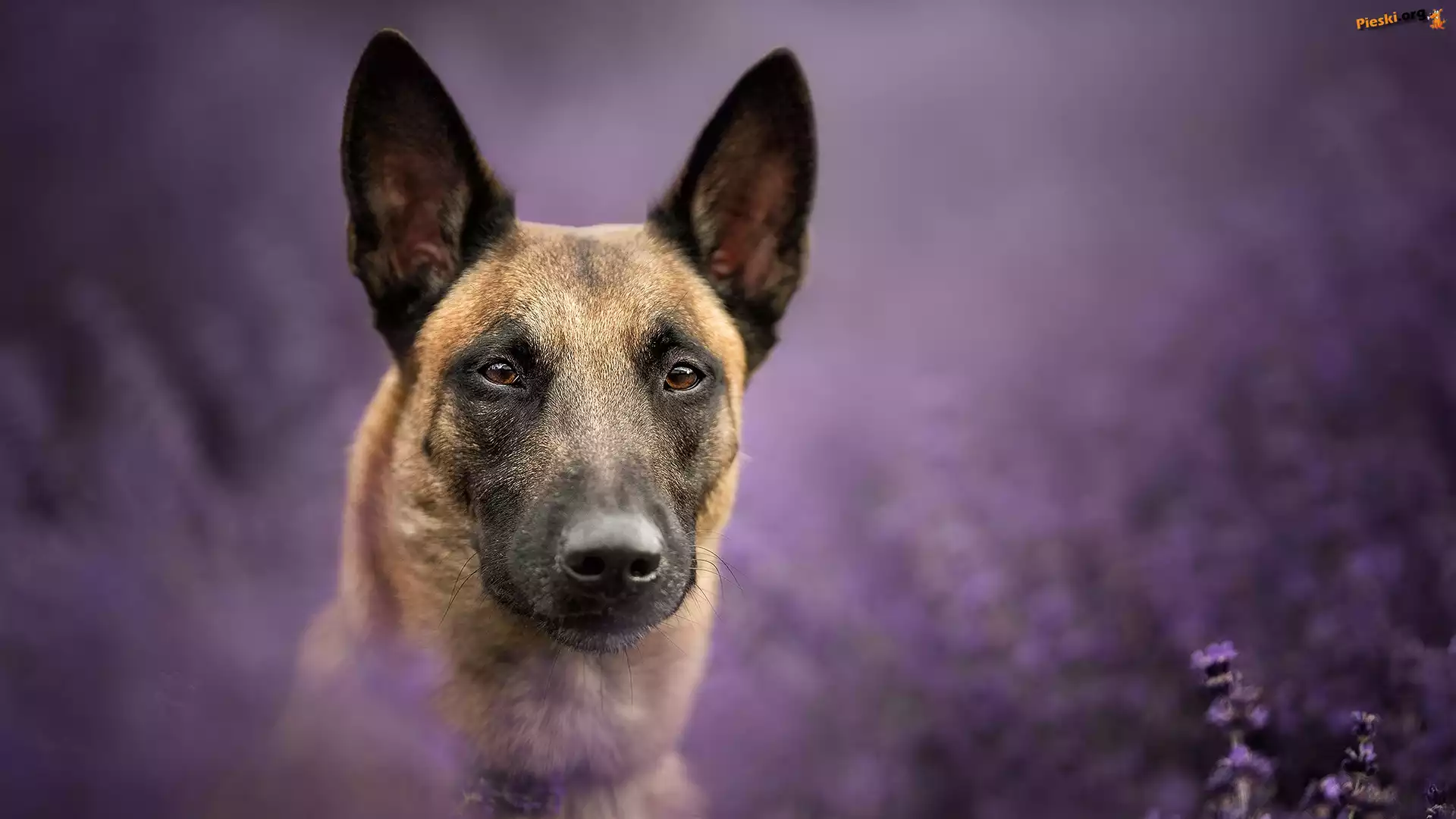 Owczarek belgijski Malinois, Pies, Mordka, Kwiaty Ptak, Syczek zwyczajny, Pies, Sowa, Owczarek belgijski Malinois Wrzosy, Pies, Rozmyte, Mordka, Owczarek belgijski malinois, Jęzor, Tło