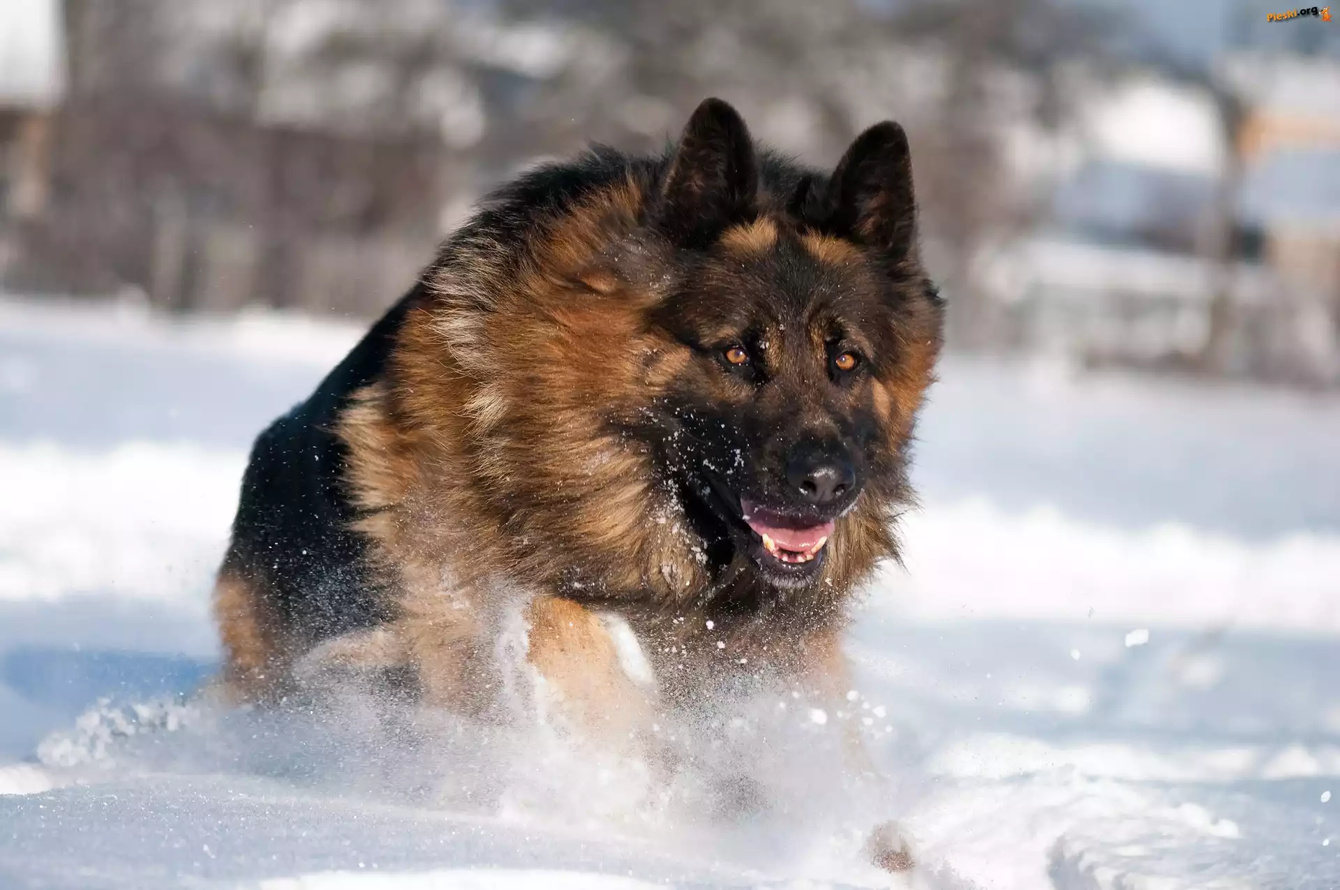 Owczarek, Niemiecki, W Śniegu, Pieski