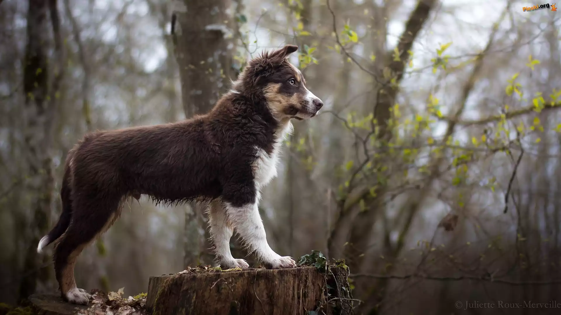 Pień, Szczeniak, Pies, Owczarek australijski, Drzewa, Pieski