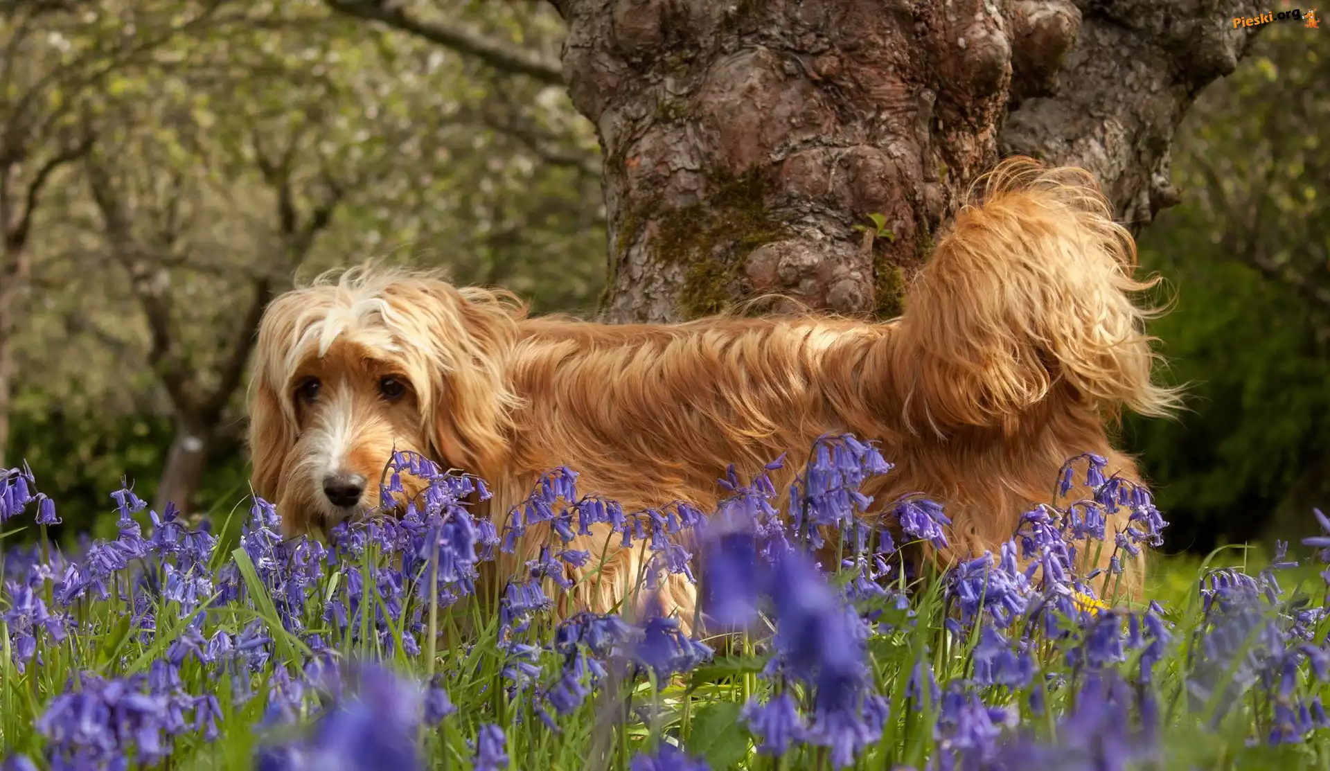 Łąka, Pies, Dzwonki, Pieski