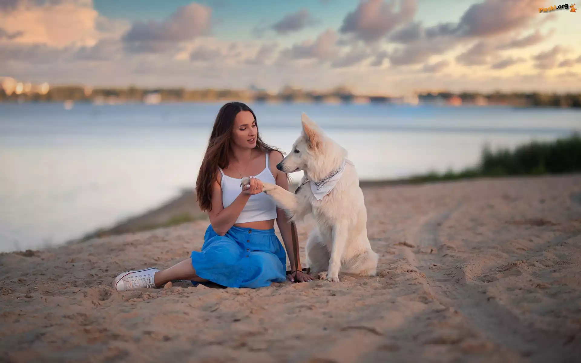 Pies, Piasek, Dziewczyna, Rzeka, Pieski