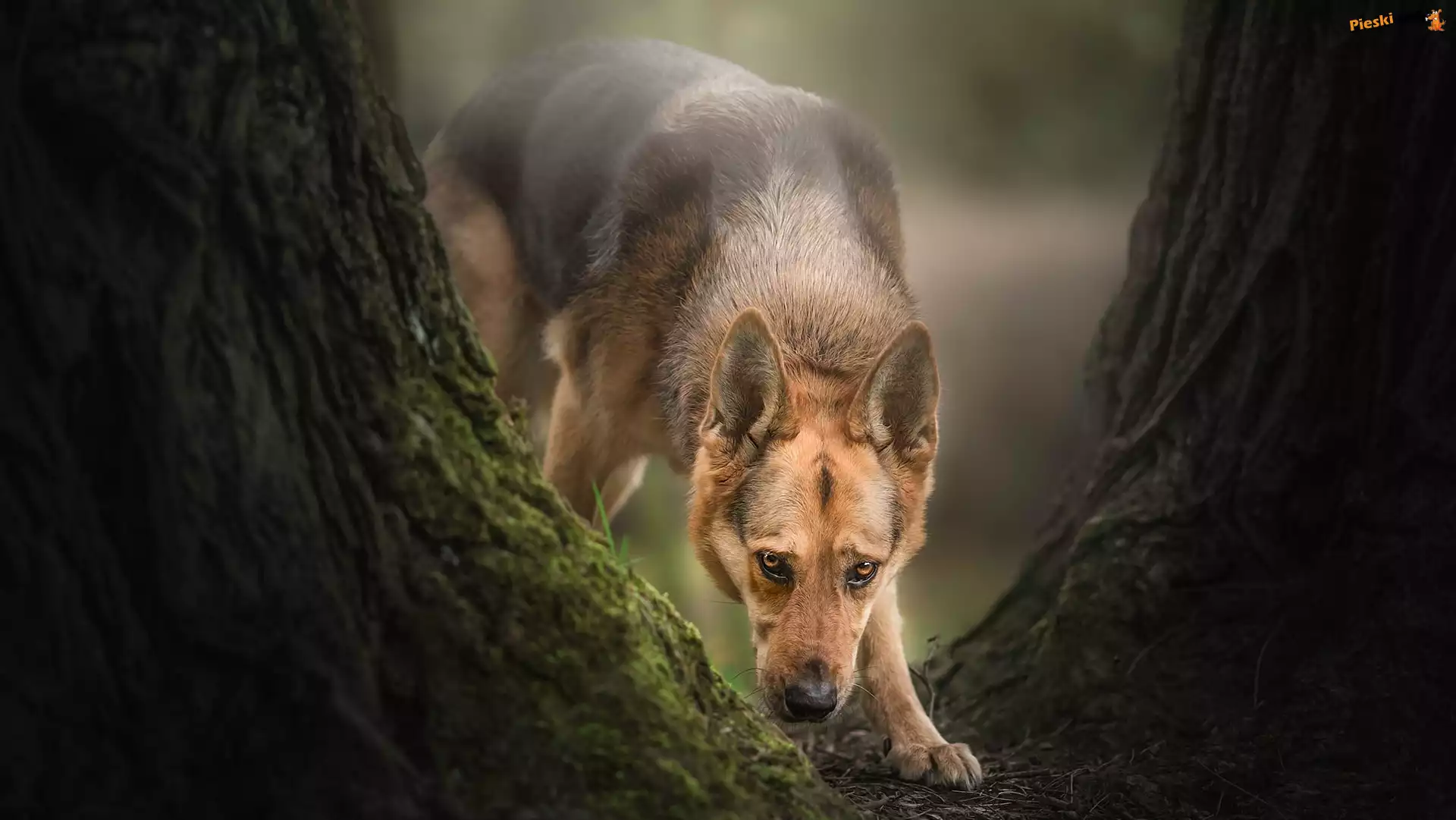 Pies, Owczarek niemiecki, Drzewa, Pieski