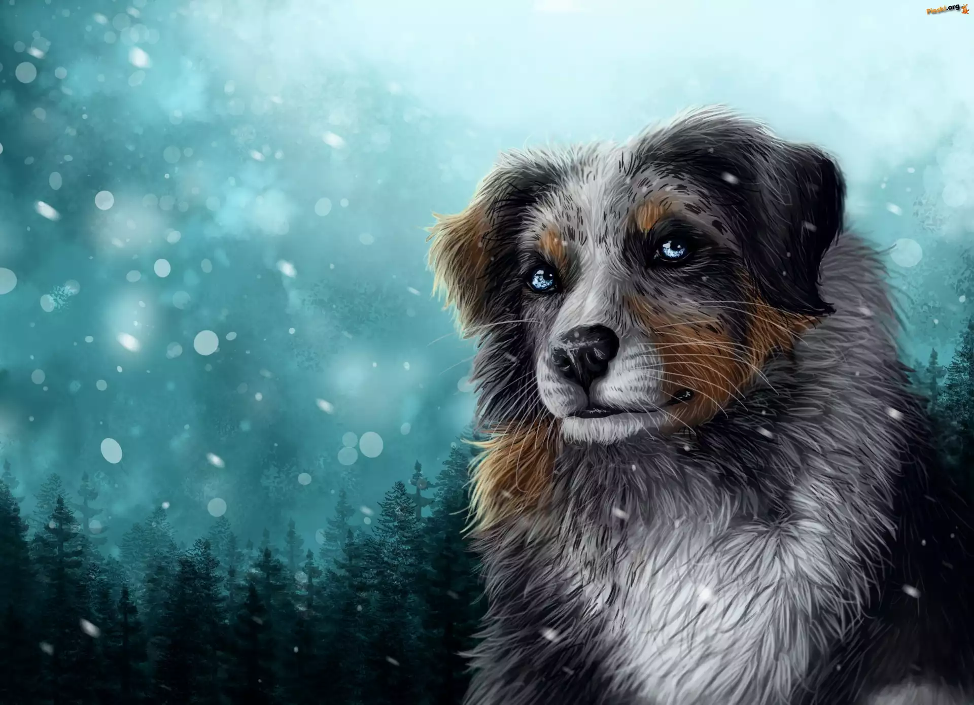 Pies, Grafika 2D, Zima, Owczarek australijski