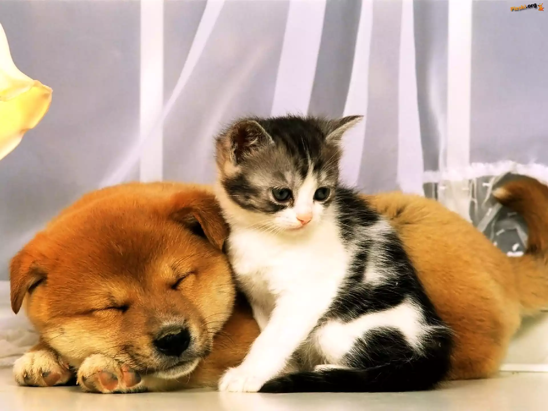 Śpiący, Pies, Kotek, Pieski