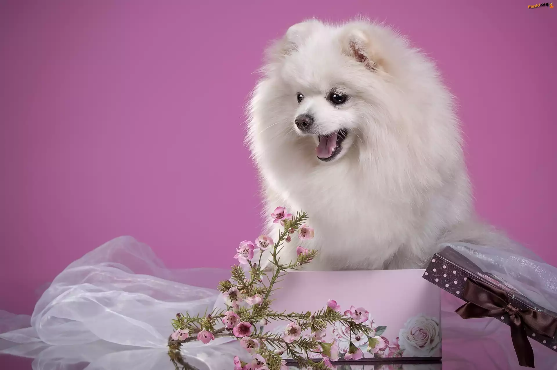 Biały, Piesek, Kwiatki, Pieski
