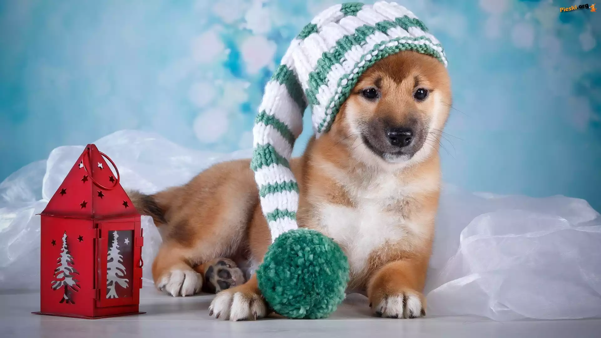 Pies, Pompon, Czapka, Szczeniak, Dzianina, Lampion, Pieski