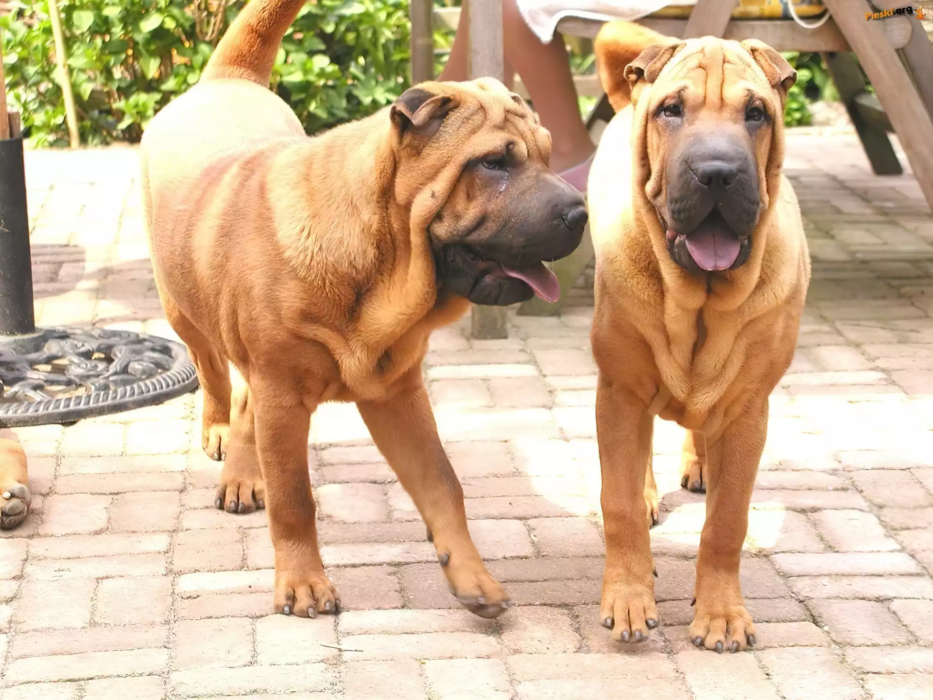 Psy, Dwa, Dorosłe, Shar Pei, Pieski