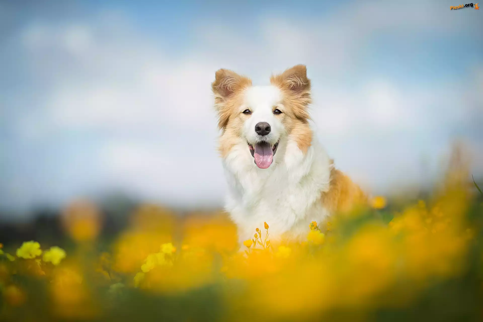 Rozmyte, Łąka, Border collie, Kwiaty, Tło