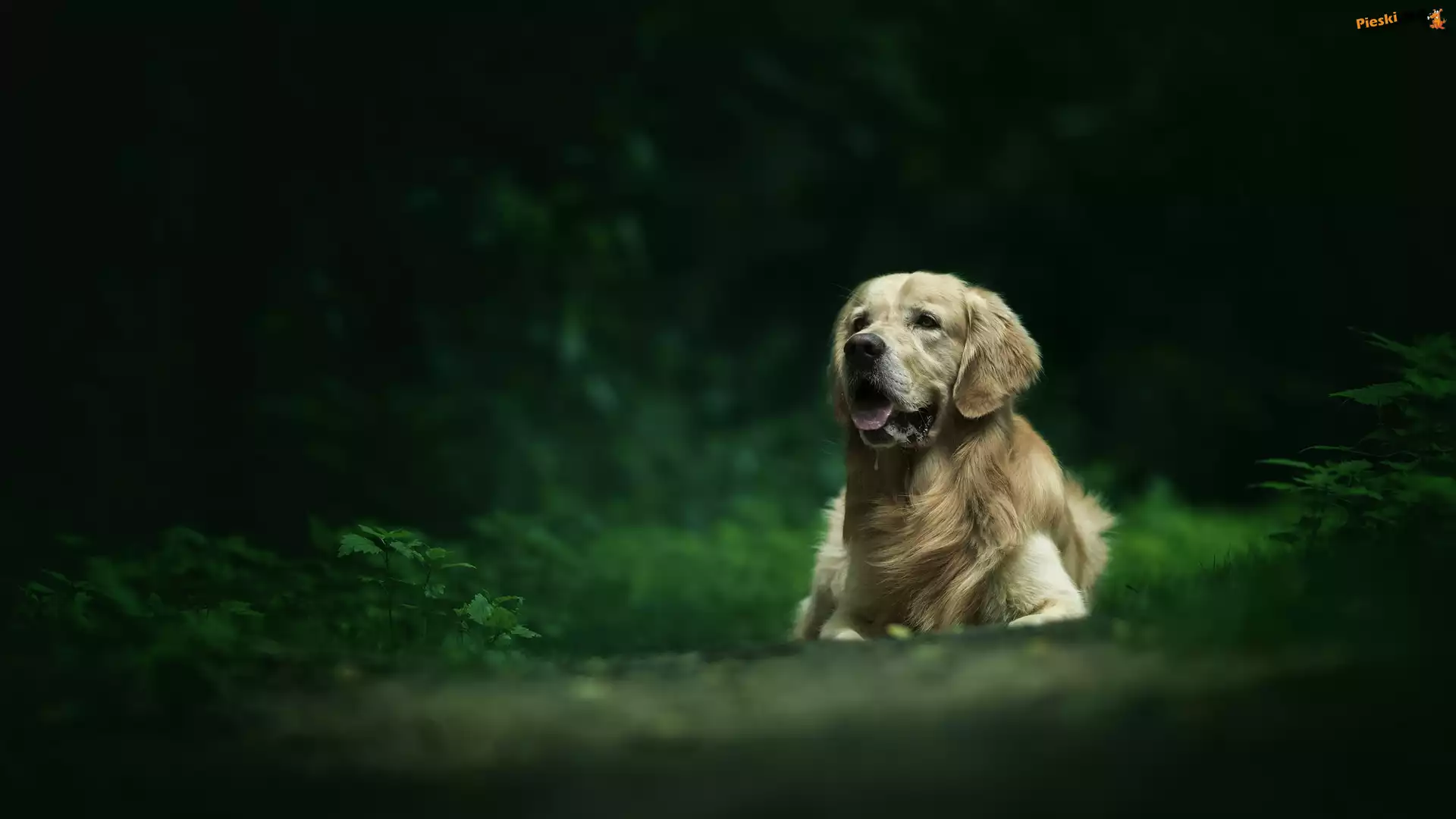 Rozmyte, Golden retriever, Pies, Rośliny, Tło, Pieski