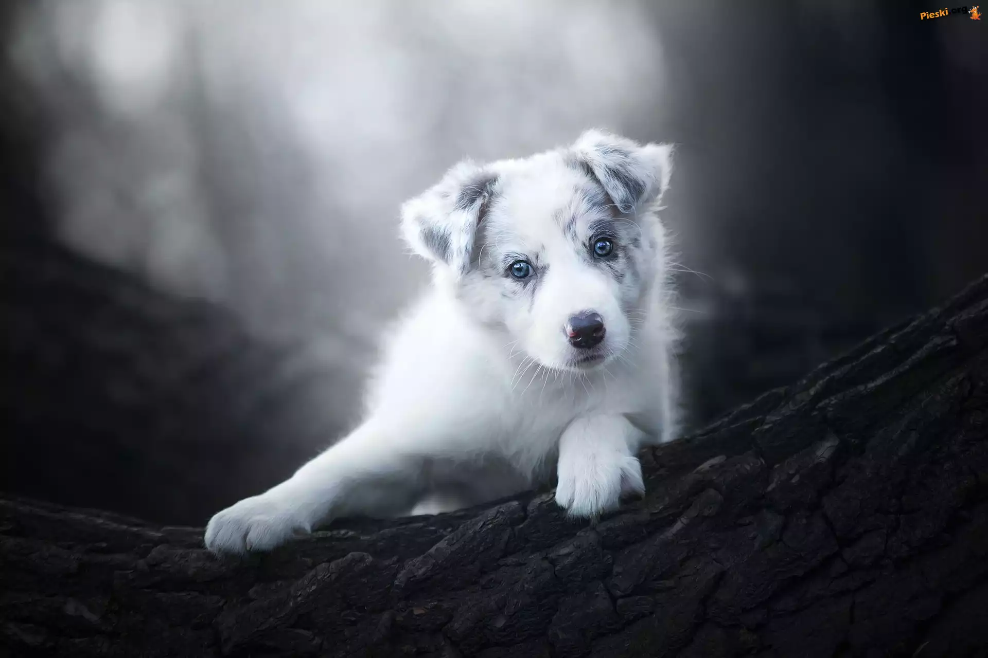 Szczeniak, Rozmyte, Kora, Border collie, Drzewo, Tło, Pieski