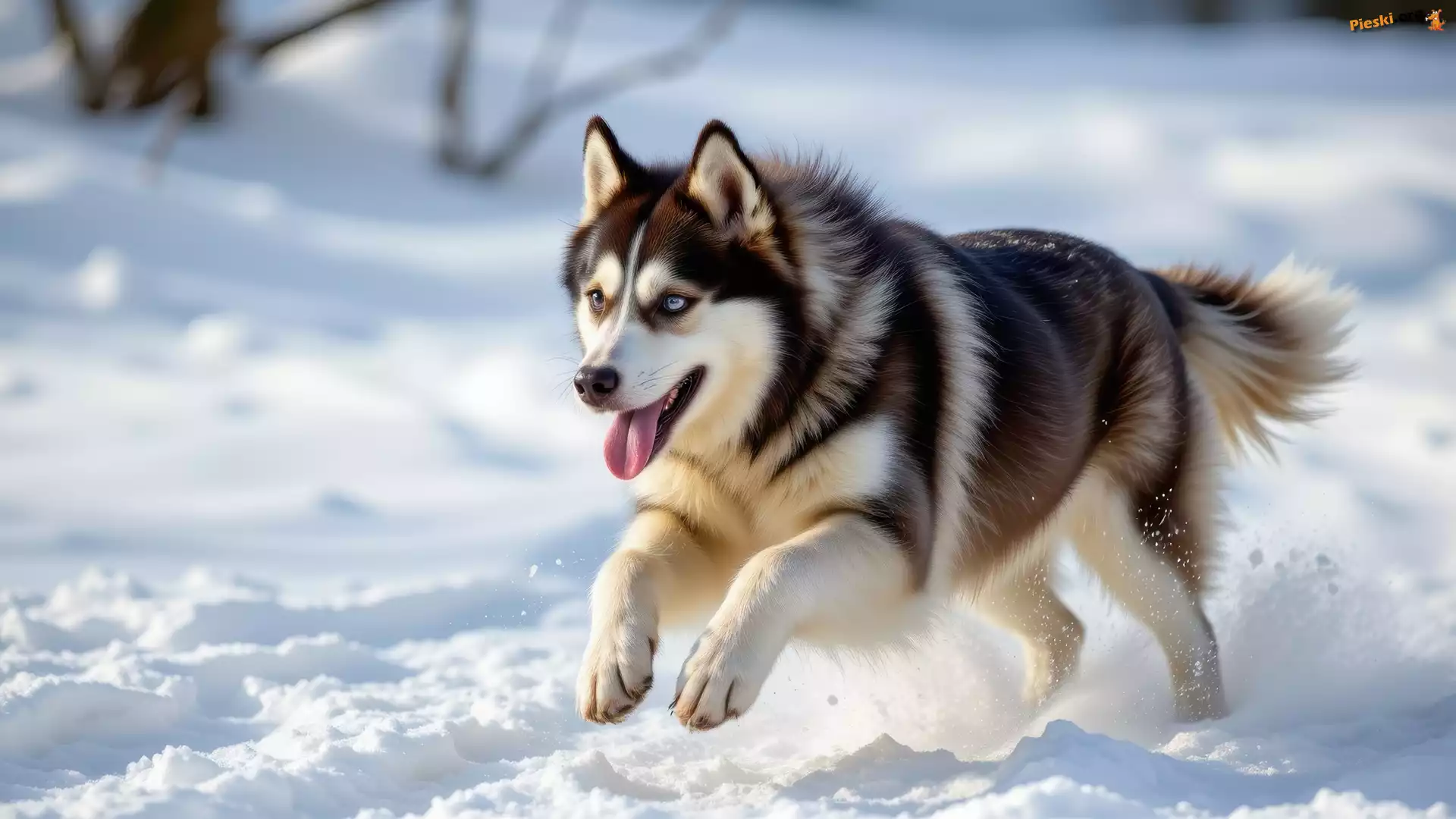 Śnieg, Siberian husky, Biegnący, Pies, Pieski