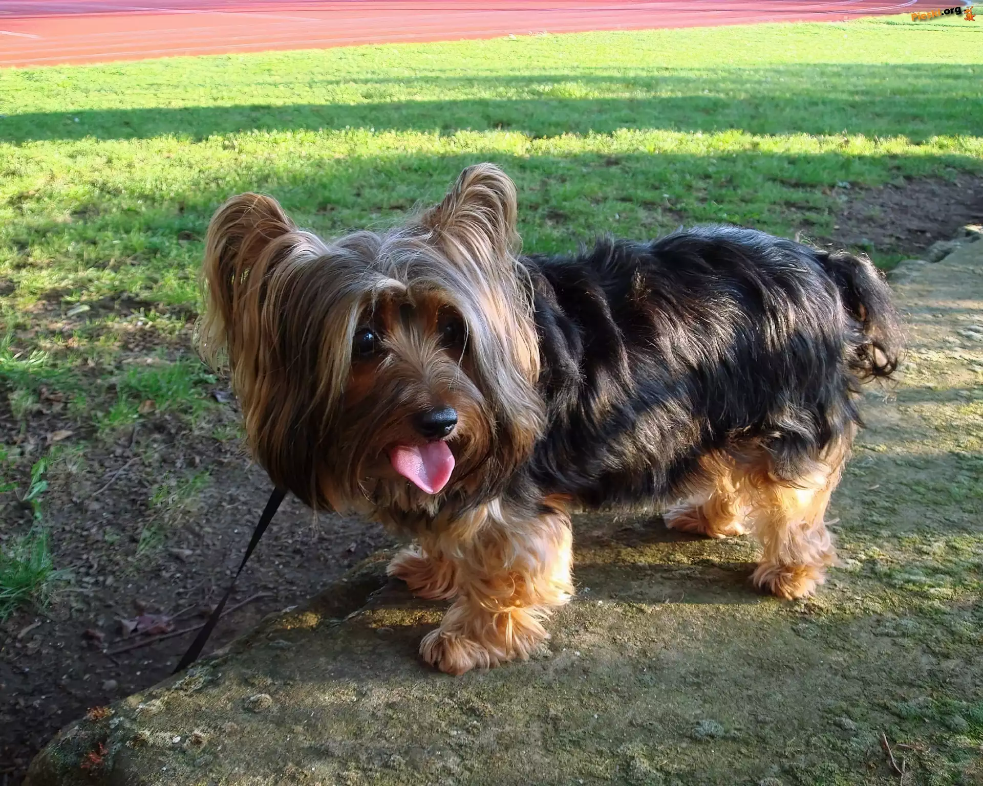 Australian Silky Terrier Wazon, Australian Silky Terrier, Kokardka, Kwiaty czerwona, Słodki, Australian Silky Terrier, kokardka