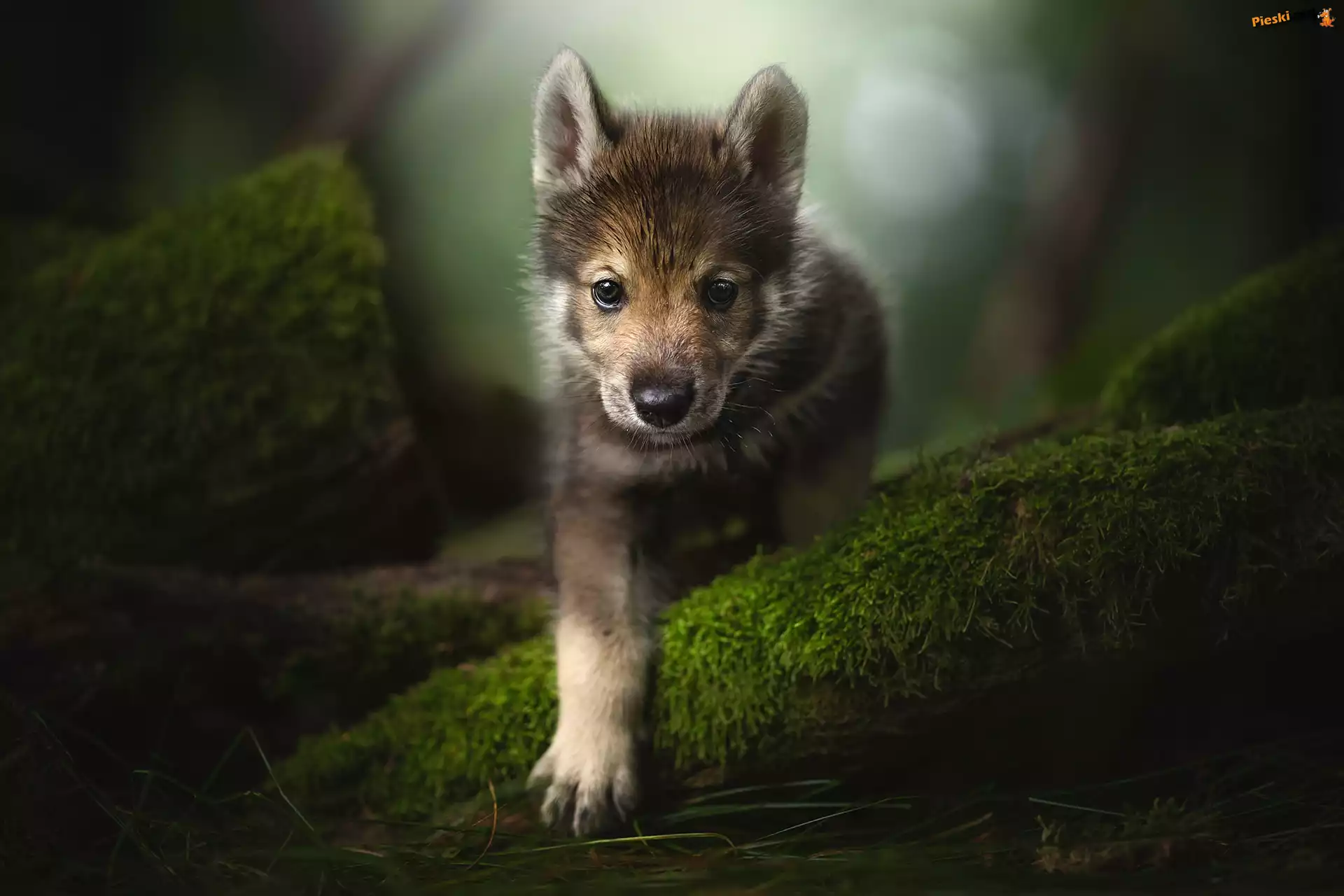 Pies, Spojrzenie, Mech, Szczeniak, Tamaskan Dog, Rozmycie, Pieski