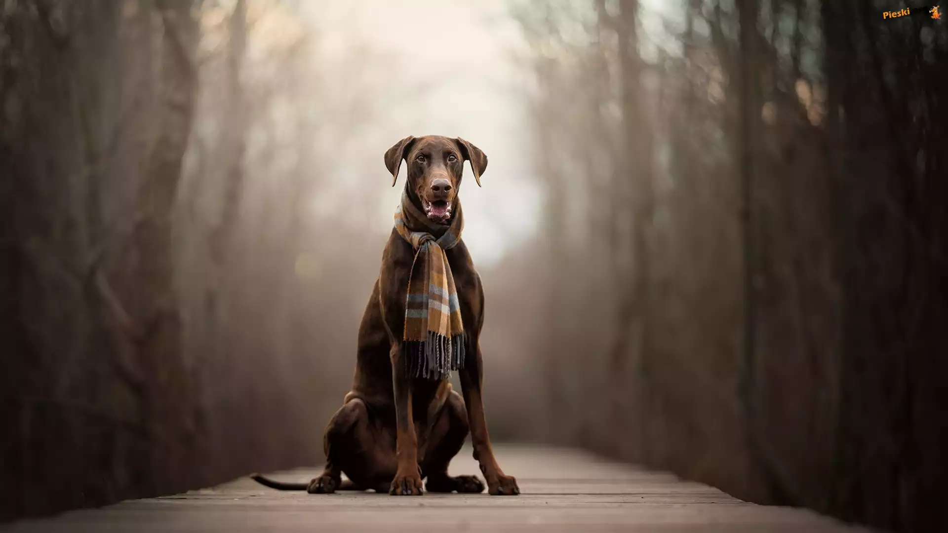 Szalik, Pies, Doberman, Kładka , Pieski