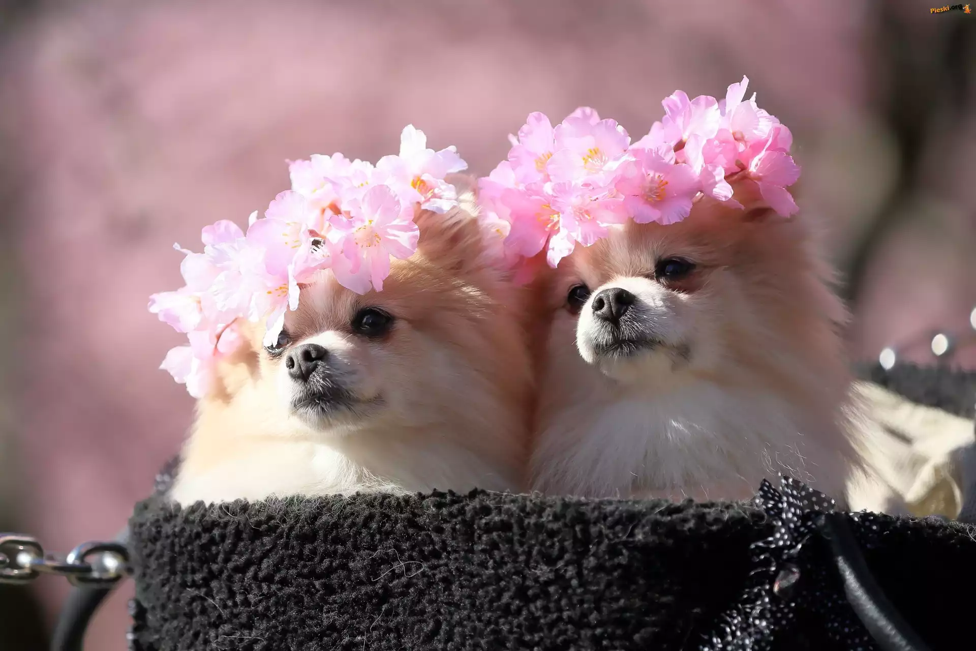 Szpice miniaturowe, Dwa, Psy, Wianki
