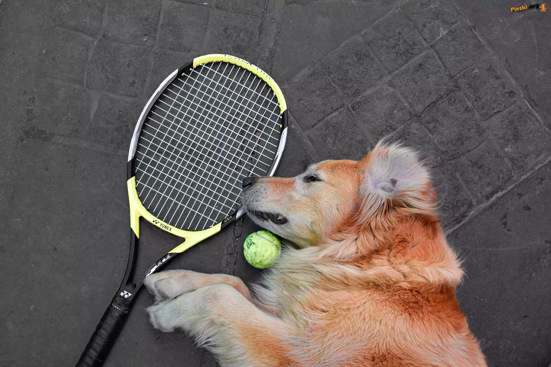 Pies, Piłka, Rakieta tenisowa
