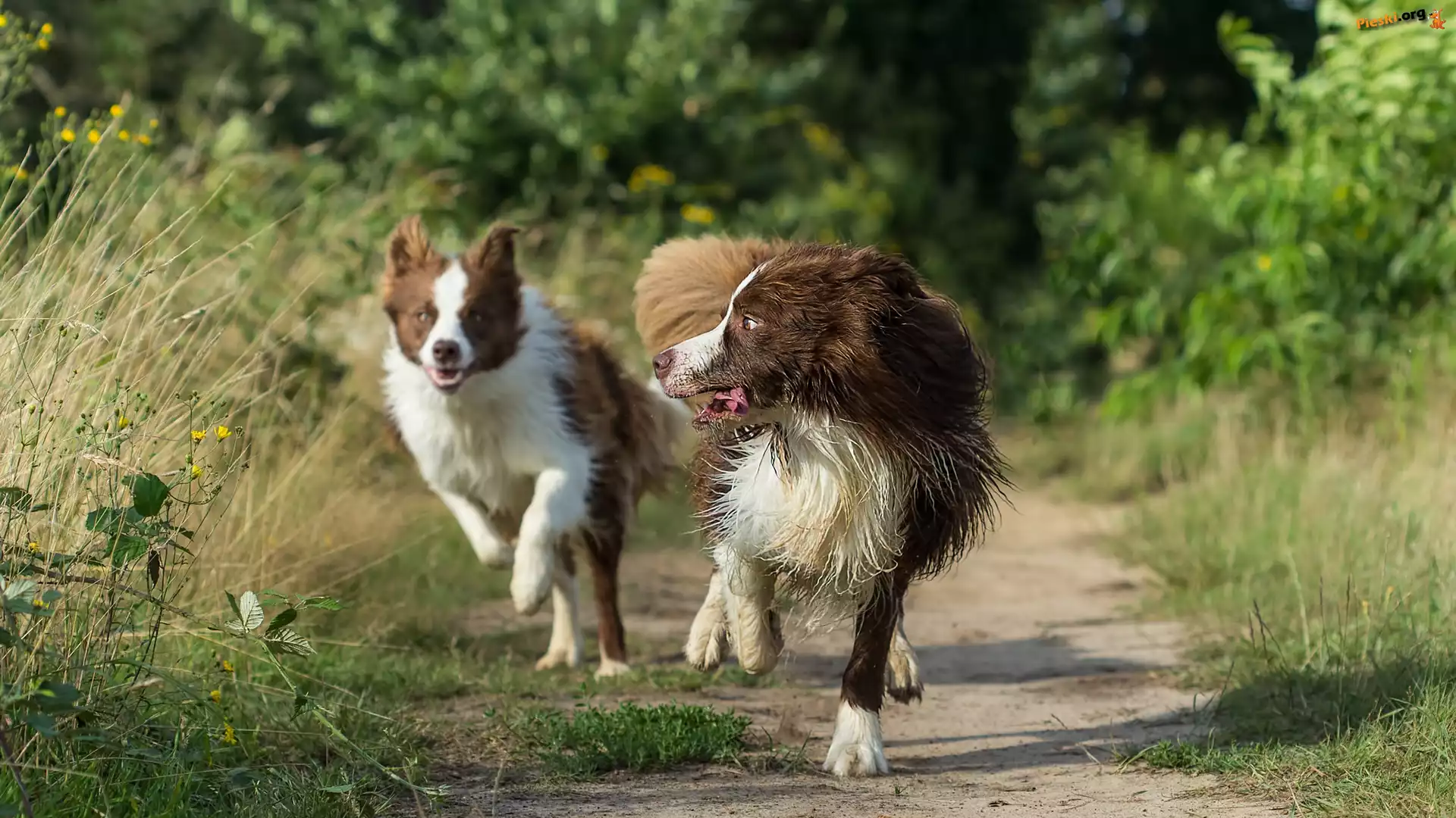 Trawy, Biegnące, Psy, Border collie, Ścieżka, Pieski