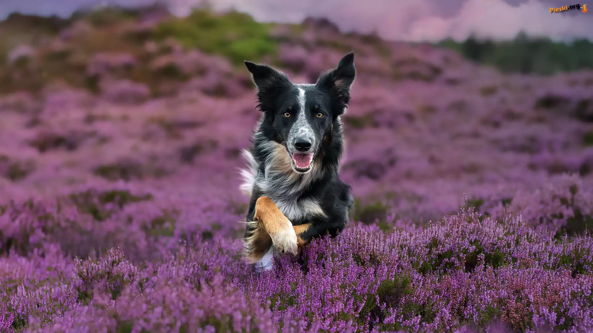 Wrzosy, Pies, Border collie, Wrzosowisko, Pieski